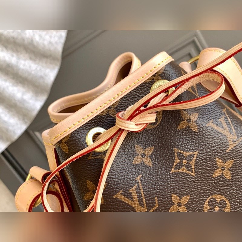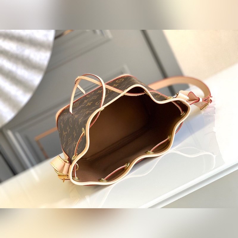 LV 모델 M40817 NO? BB 핸드백 버킷백 1932년에 디자인된 클래식한 노에 백이 귀여운 미니 버전으로 재해석되었습니다. 가방의 바닥은 가죽으로 보강되어 있으며 높이는 9인치 미만입니다. 모노그램 캔버스로 제작된 이 노에 백은 오리지널 시그니처 가죽 드로스트링과 캐주얼한 크로스 바디 스타일을 위한 확장된 숄더 스트랩이 특징입니다. 크로스 바디 가죽 끈으로 여미는 서명 천연 소가죽 트림 반짝이는 금색 금속 부속품 안감 D링 강화된 바닥 가방이 똑바로 서 있을 수 있음 어깨끈: 탈부착 불가 길이 조절 가능 가방 스트랩 반 길이: 50.0cm 조절 가능한 스트랩 길이: 55.0cm 차원 22 x 24 x 15cm (길이 x 높이 x 너비)