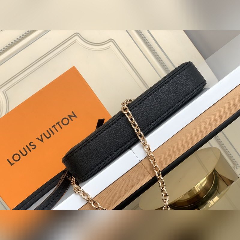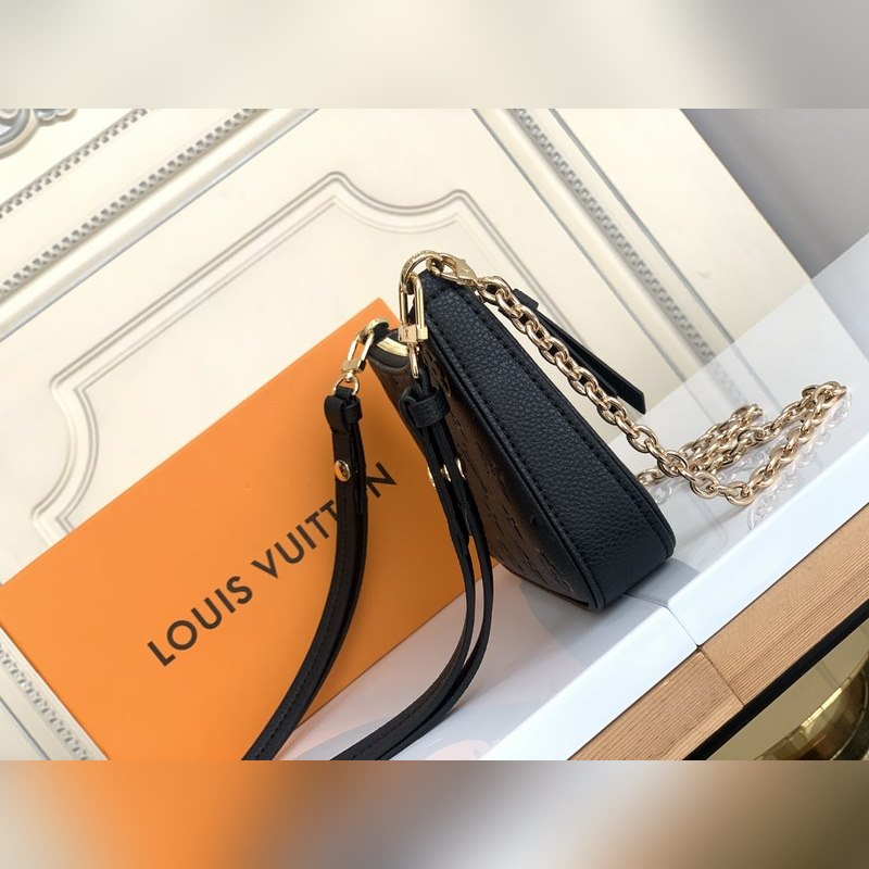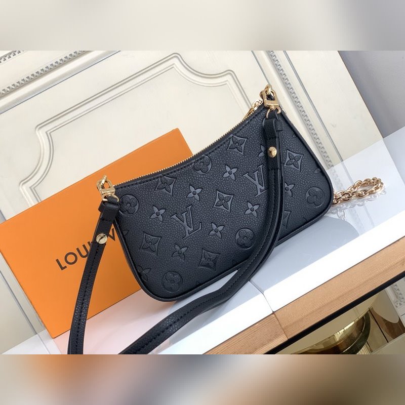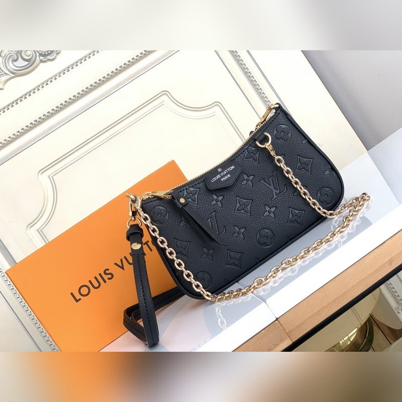 LV 이지 파우치 온 스트랩 핸드백 모델 M80349 블랙 엠보싱 2022 봄 컬렉션 스트랩 핸드백에 간편한 파우치 모노그램 앙프렝뜨 가죽으로 제작된 이 제품은 모노그램 엠보싱과 부드러운 질감으로 세련된 스타일을 자아냅니다. 체인과 조절 가능한 가죽 어깨 스트랩을 이용해 어깨에 메거나 몸에 걸칠 수 있습니다. 크기: 19 x 11.5 x 3cm