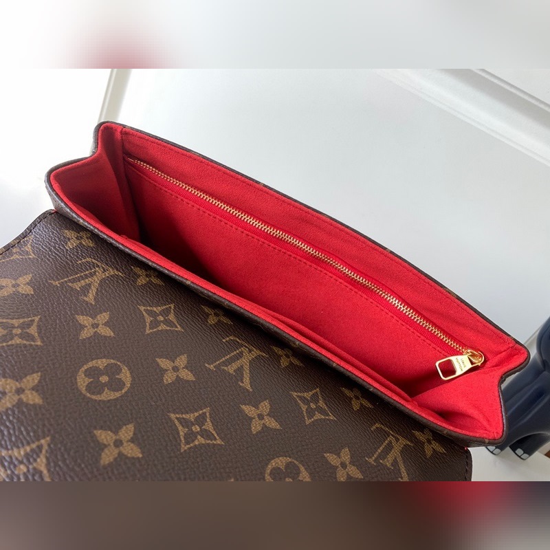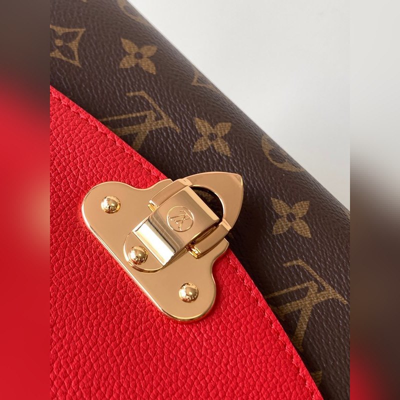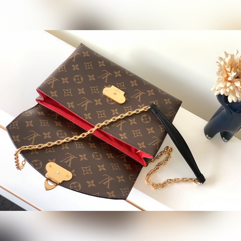 LV 모델 M43713 올드 레드 체인 백 크로스바디 백 가죽은 프랑스 A등급의 진짜 가죽으로 수작업으로 제작되었으며 기름칠한 가장자리는 매우 섬세합니다. 크기: 25x17x7CM
