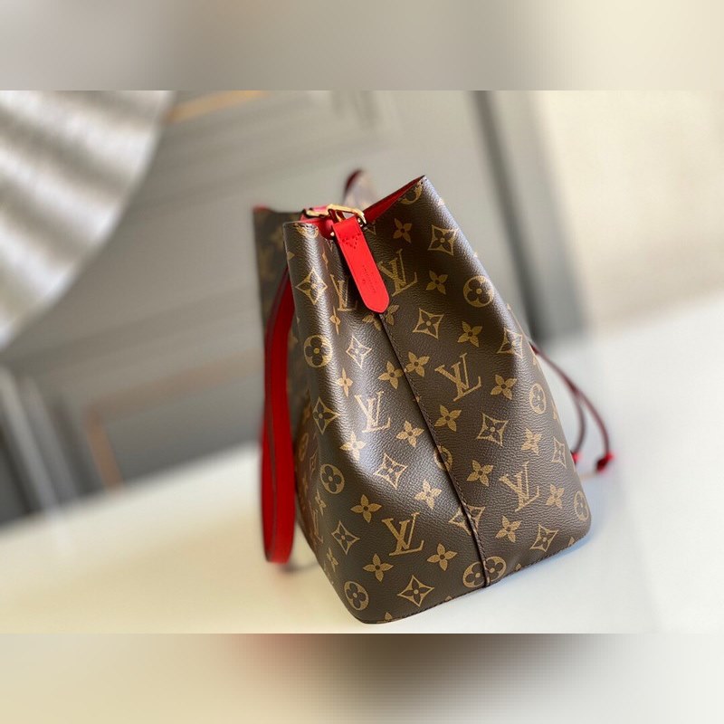 LV 모델 M44887 N?ONO? 핸드백 버킷백 1932년 샴페인을 운반하기 위해 디자인된 가스통 루이 비통의 와인 백은 현대적인 트렌드를 반영하여 계승된 아름다움을 구현하는 네오노에 버킷 백으로 변형되었습니다. 모노그램 캔버스는 부드러운 라인을 강조하고 컬러 가죽 트리밍과 같은 색상의 다층 보세 안감으로 보완됩니다. 모노그램 코팅 캔버스 무늬가 없는 소가죽 극세사 안감 조임끈 쇠구멍 칸 중앙 지퍼 패치 포켓 어깨끈: 탈부착 가능 길이 조절 가능 핸들 길이: 33.0cm 조절 가능한 스트랩 길이: 56.0cm 차원 26 x 26 x 17.5 cm (길이 x 높이 x 너비)