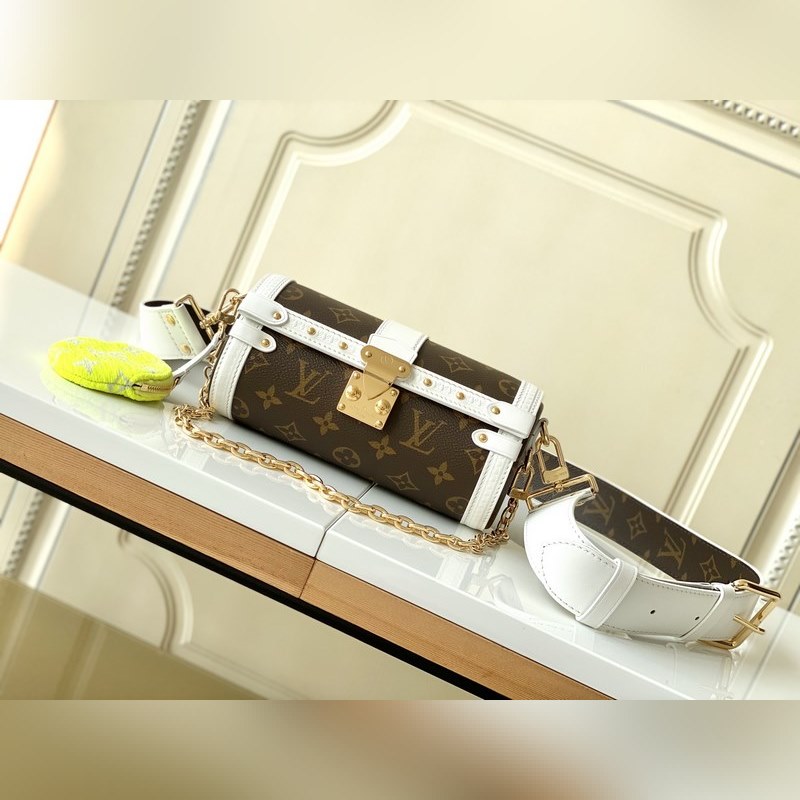 LV 모델 M81485 노안과 흰색 둥근 돌출 시리즈 PAPILLON TRUNK Papillon BB 핸드백 2021년 프리폴 가을과 겨울 시리즈 신제품 파피용 트렁크 토일 모노그램 핸드백은 모노그램 가죽으로 제작되었으며 모노그램 프린트를 묘사하고 있습니다. 클래식한 파피용 핸드백의 실루엣을 컴팩트한 크기로 재현했습니다. 탈착식 자카드 숄더 스트랩은 스포티한 느낌을 전달하며 동봉된 라운드 지퍼 동전 지갑은 테니스의 클래식한 색상을 선보이며 컴팩트한 디자인에 흥미를 더합니다. 크기: 20x10x10cm