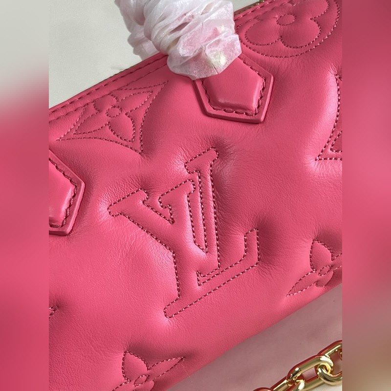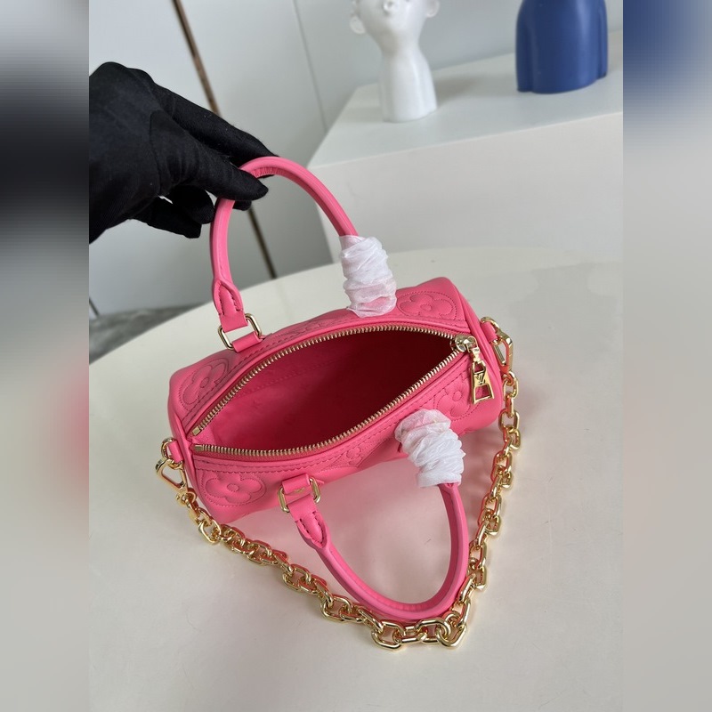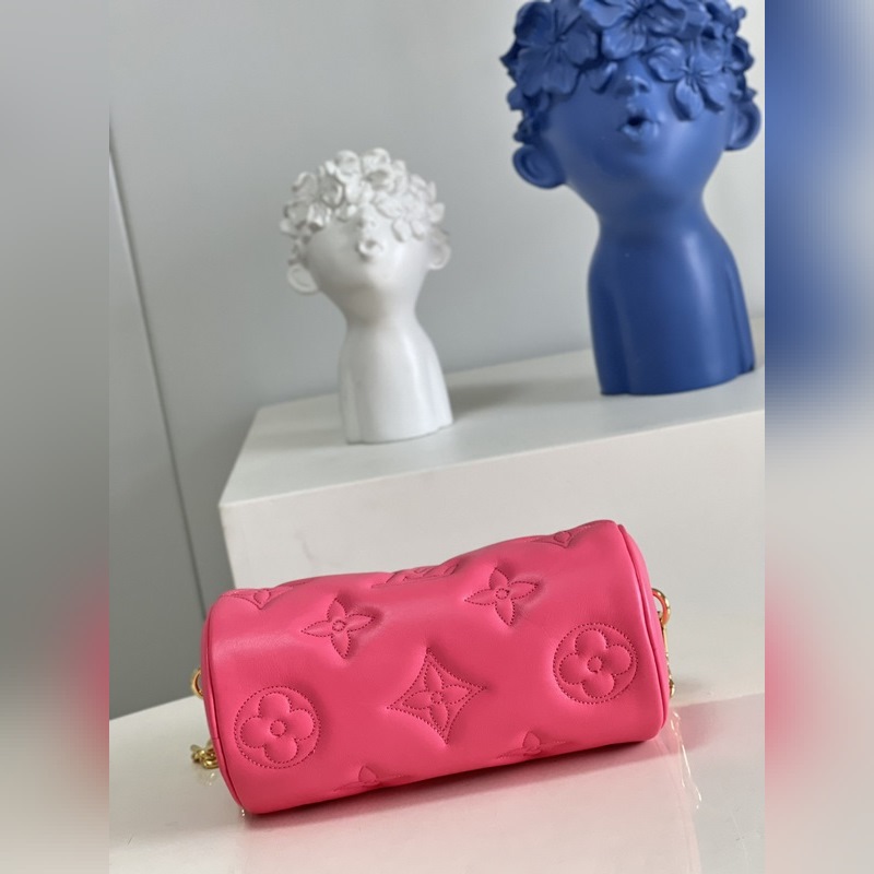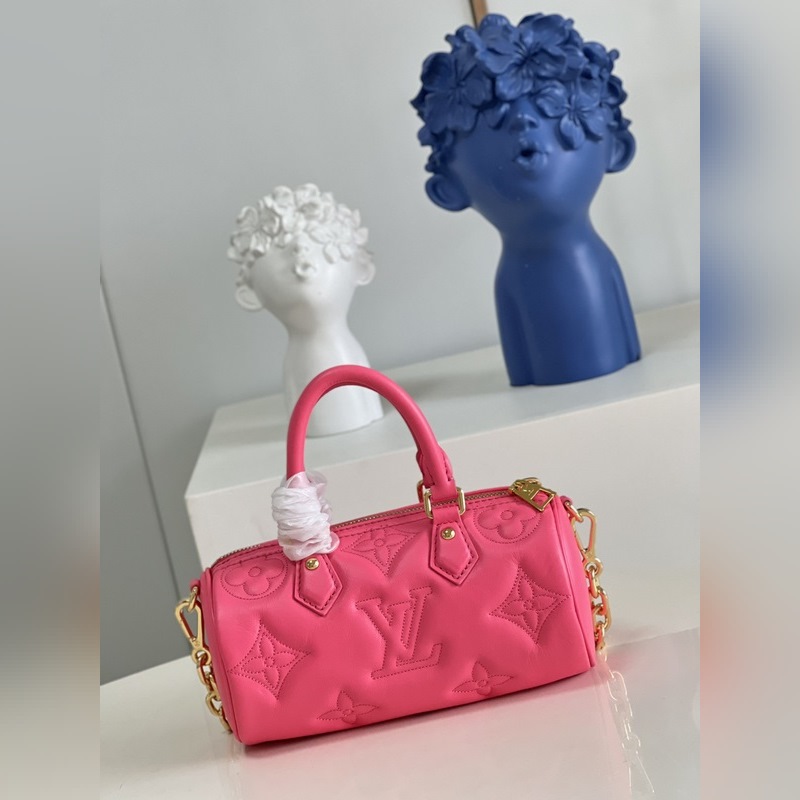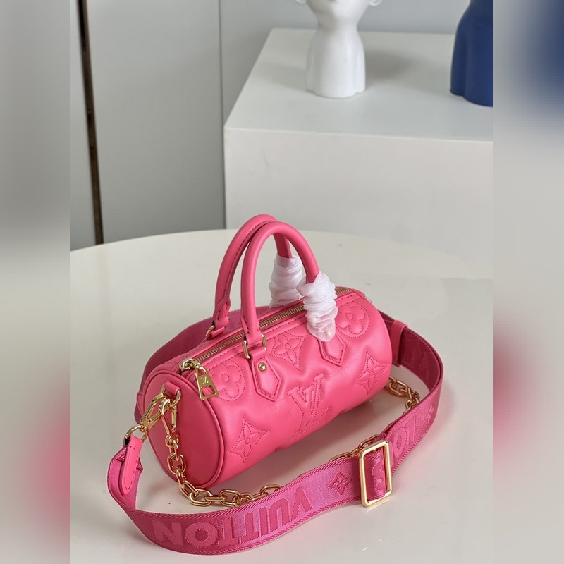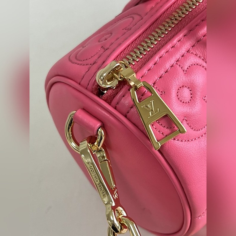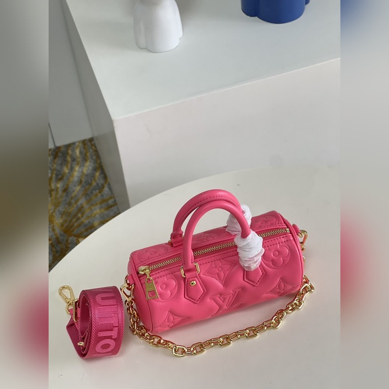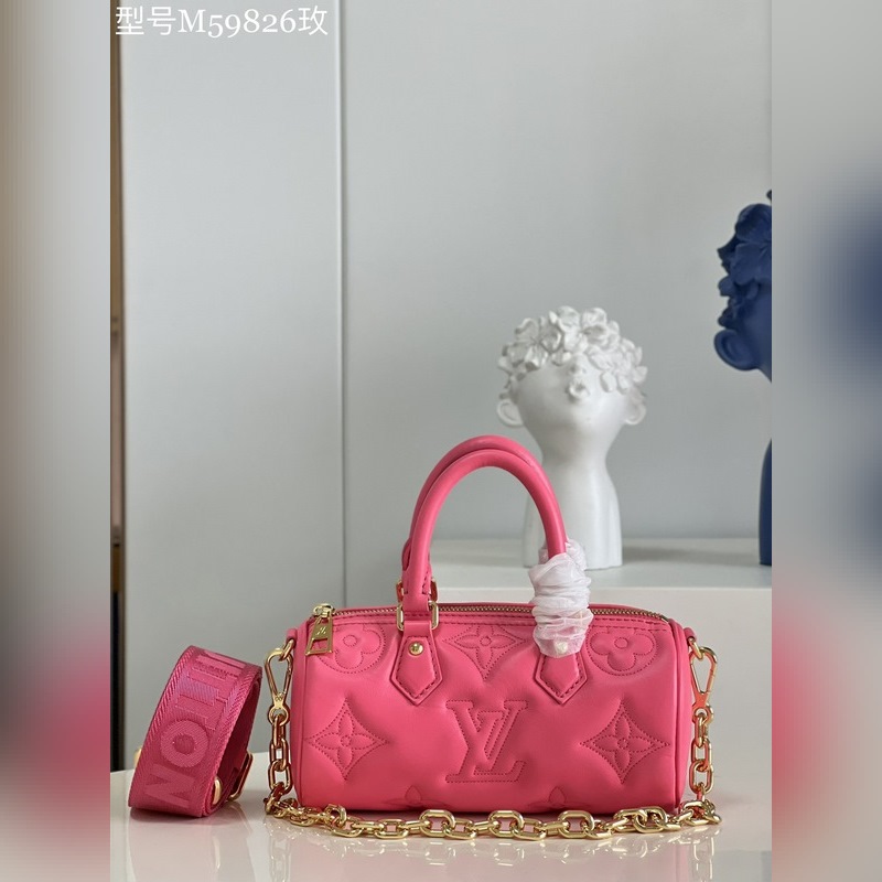 LV Papillon BB 핸드백 모델 59826 로즈 이 파피용 BB 가방은 부드럽고 패딩 처리된 소가죽으로 제작되었으며 자수 형태의 모노그램 패턴이 특징입니다. 탈착식 체인 탈착식 어깨 스트랩 롤링 가죽 핸들을 사용하여 다양한 운반 방법을 시도해 보세요. 크기 20 x 10 x 10 cm (길이 x 높이 x 너비)