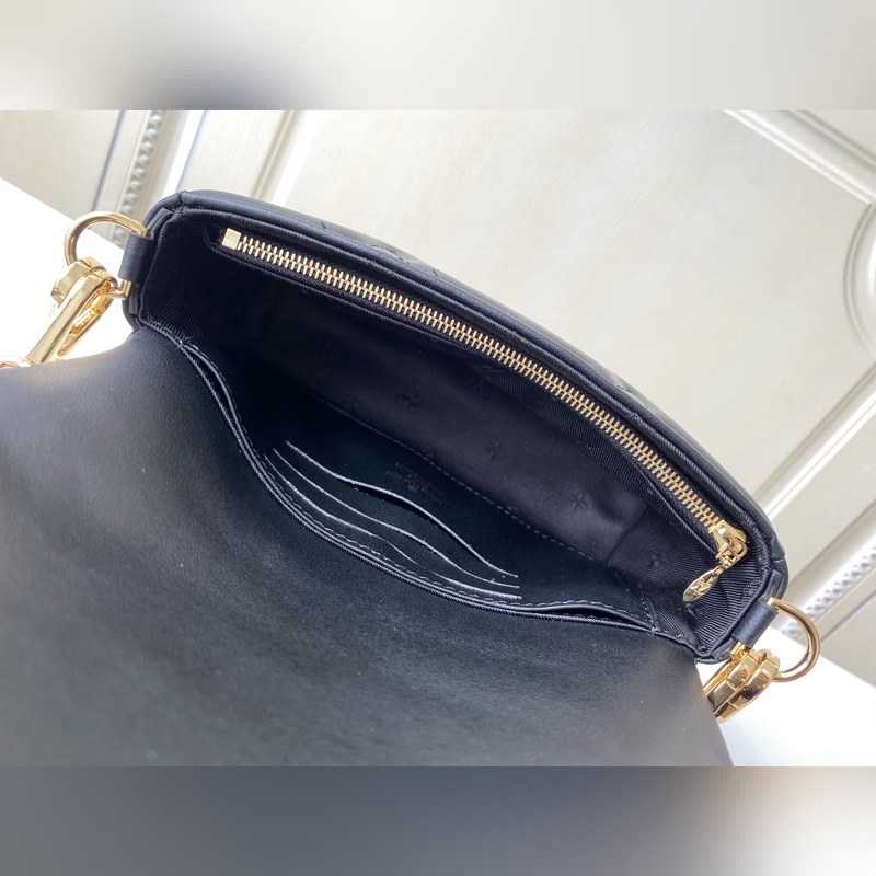 LV 월렛 온 스트랩 핸드백 모델 M81398 블랙 버블그램 시리즈의 이 월렛 온 스트랩 핸드백은 부드러운 패딩 소가죽에 클래식한 모노그램 패턴이 자수되어 있습니다. 자석으로 여닫는 플랩은 트렌디한 형태로 열리고 역동적인 나일론 숄더 스트랩은 어깨에 메거나 크로스 바디로 메는 데 사용할 수 있습니다. 숄더 스트랩을 분리하면 저녁 파티용 클러치 백으로 변신합니다. 크기: 20.0 x 12.0 x 6.0cm(가로 x 세로 x 높이)