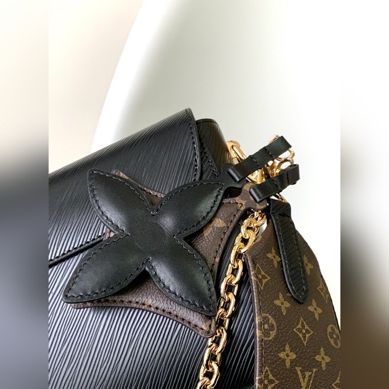 LV 트위스트 미디엄 핸드백 숄더백 모델 M59018 M59016 이 트위스트 미디엄 백은 에피 그레인 가죽으로 만들어졌으며 체인 스트랩과 모노그램 플라워 참이 특징입니다. 나일론 숄더 스트랩은 한쪽 면에 자수가 놓여 있어 모노그램 플라워 패딩에 질감을 더해 주고 뒤집으면 모노그램 캔버스 패턴이 드러납니다. 에피 그레인 가죽 나일론 트림 마이크로파이버 안감 금속 부속품 LV 트위스트 잠금 내부 패치 포켓 큰 내부 포켓 숄더 스트랩: 탈부착 가능 조절 불가 스트랩 길이: 44.0cm 체인: 탈착식 체인 길이: 25.0cm 크기 23 x 17 x 9.5cm(길이 x 높이 x 너비)