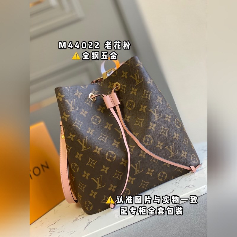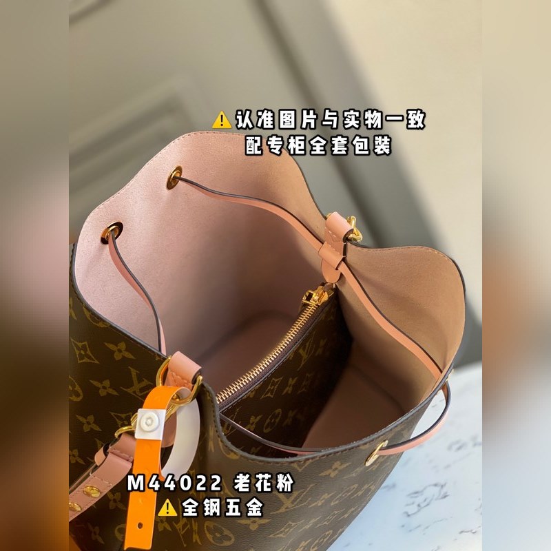LV 모델 M44022 올드 핑크 버킷 백 숄더백 가죽은 이탈리아 A급 가죽입니다. 이 제품은 품질 하드웨어 원단 장인 정신 오일 엣지 힐 등 모든 면에서 일관성이 있으며 오리지널 포장 세트도 함께 제공됩니다. 크기: 26x26x17.5CM