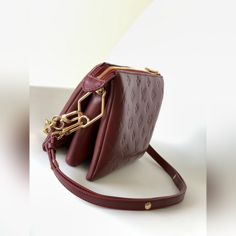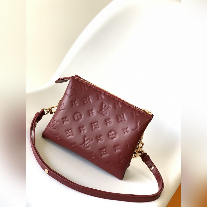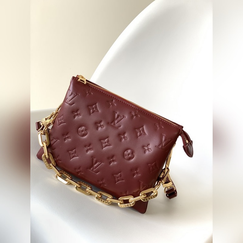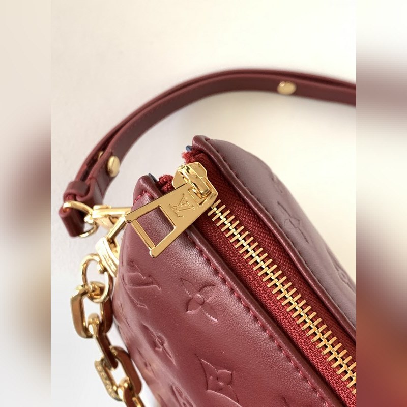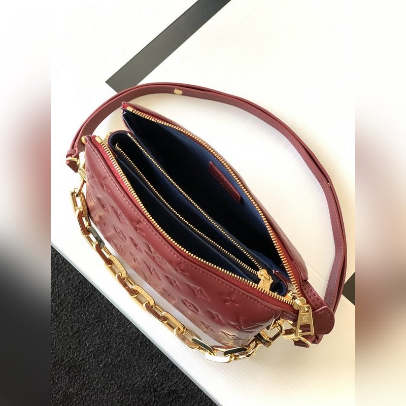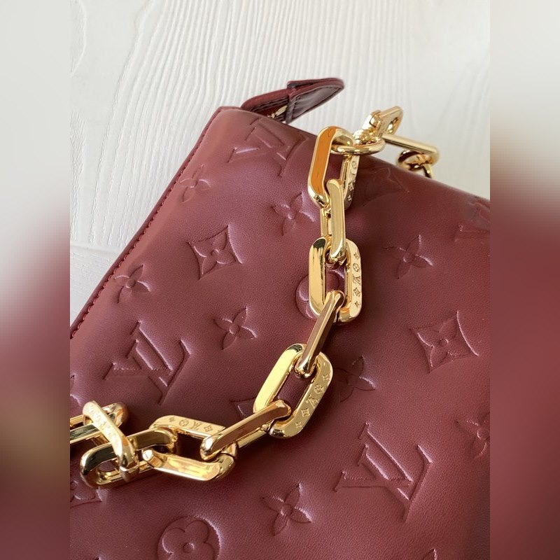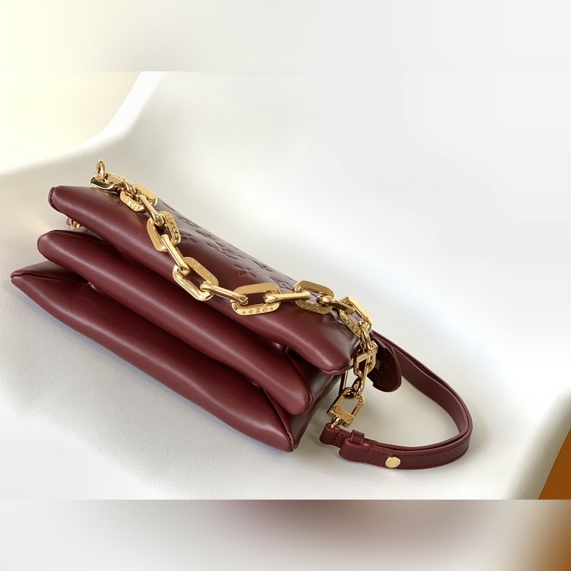 LV 모델 M58276 마룬 쿠썽 BB 백 숄더백 크로스바디 백 2021년 봄/여름 패션쇼에서 큰 인기를 끌었습니다. 양각 모노그램 양가죽 쿠션은 미니멀리스트 디자인에 아방가르드한 느낌을 더해줍니다. 어깨끈을 이용해 크로스 바디로 착용하거나 체인 백으로 착용하거나 팔 아래에 매고 다닐 수 있습니다. 크기 20 x 16 x 12cm(길이 x 높이 x 너비) 분리 가능한 체인 절반 길이: 27.0cm