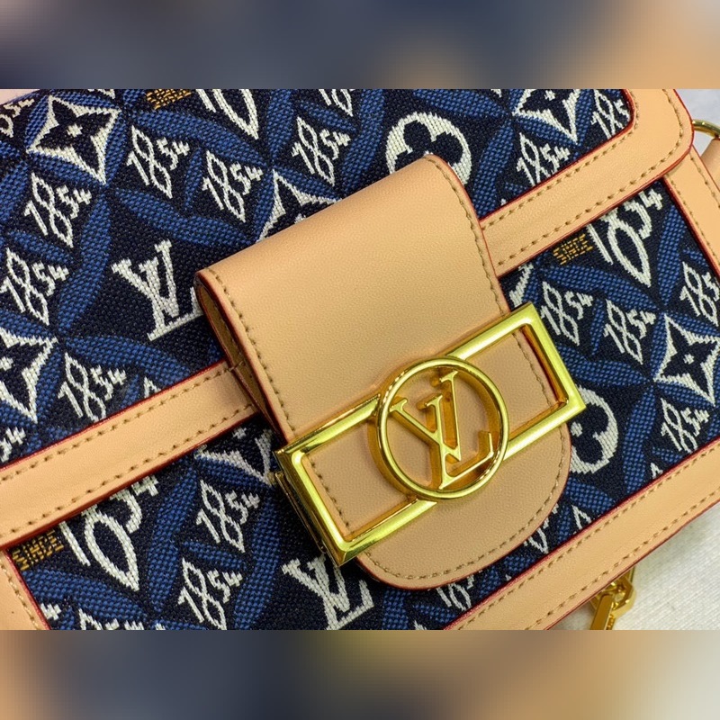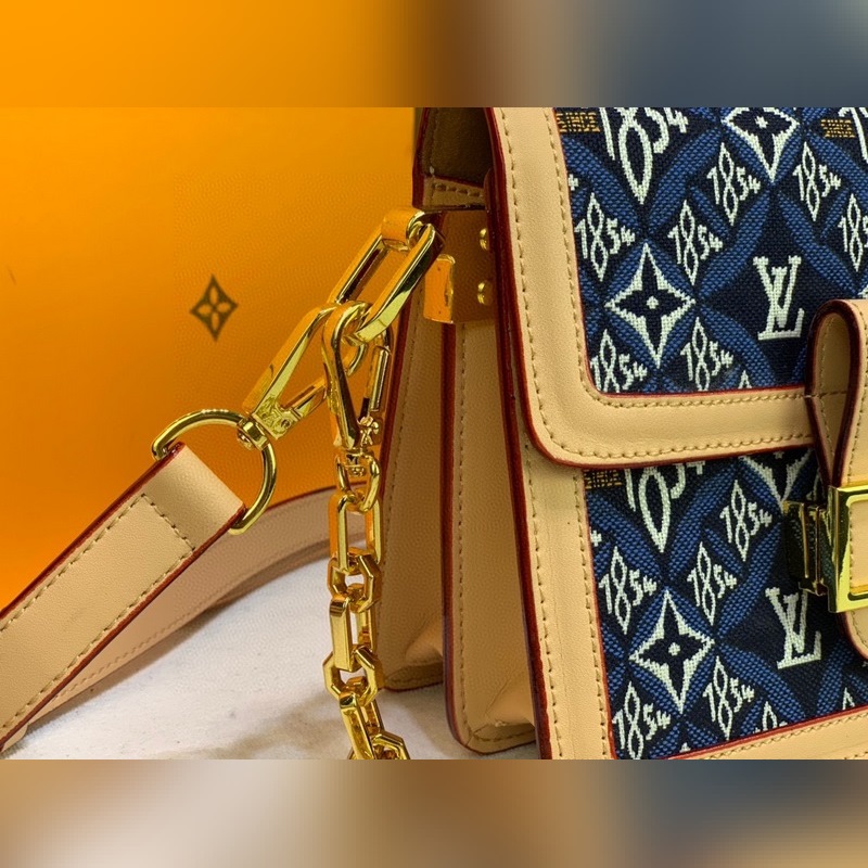 LV 모델 M57499 블루 도핀 중형 핸드백 이 도핀 핸드백은 새로운 1854년 이후 자카드 패브릭으로 만들어졌으며 모노그램 꽃 LV 로고 브랜드 창립 연도를 나타내는 1854라는 숫자가 짠 선으로 표현되어 있습니다. 내부 수납 공간과 탈착식 어깨끈이 있어 일상적으로 휴대하기에 편리합니다. 크기: 20.0 x 15.0 x 10cm