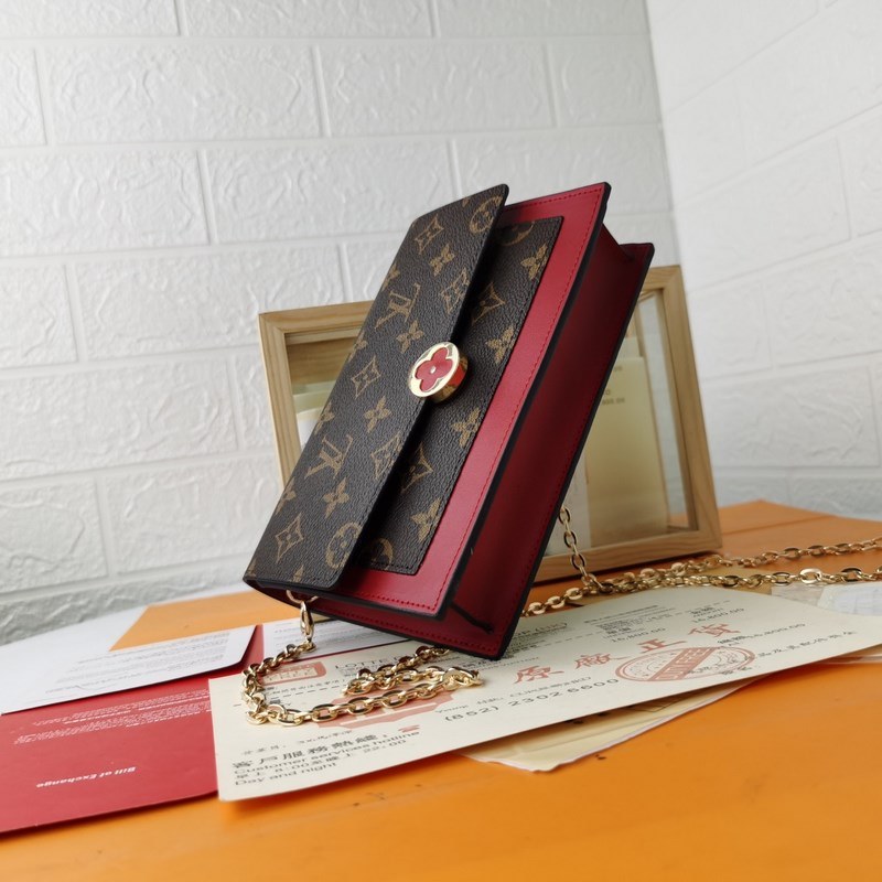 LV 모델 M67405 포춘 백 플로어 체인 지갑 이 플로르 체인 지갑은 모노그램 캔버스와 송아지 가죽으로 만들어져 여성스러운 실루엣을 자랑하며 독창적인 모노그램 꽃 모양의 잠금 장치가 특징입니다. 내부 공간이 넉넉해 휴대폰과 기타 개인 소지품을 넣을 수 있으며 클러치 숄더백 또는 크로스바디 백으로 사용할 수 있습니다. 크기: 17.5 x 11.5 x 3.5cm