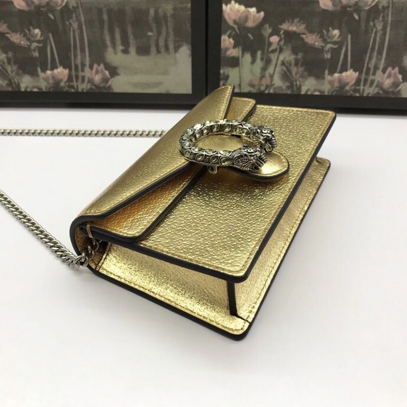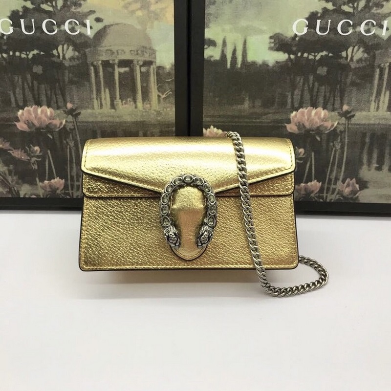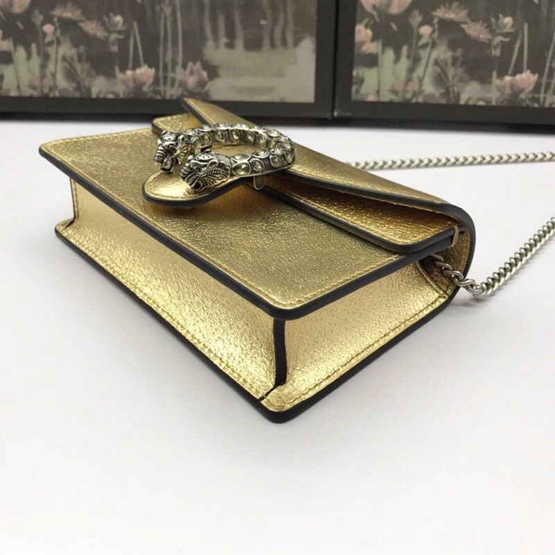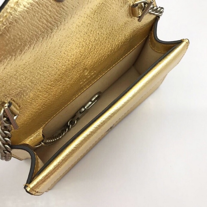 GUCCI 가죽 체인 울트라 미니 핸드백 모델 번호: 476432 골드