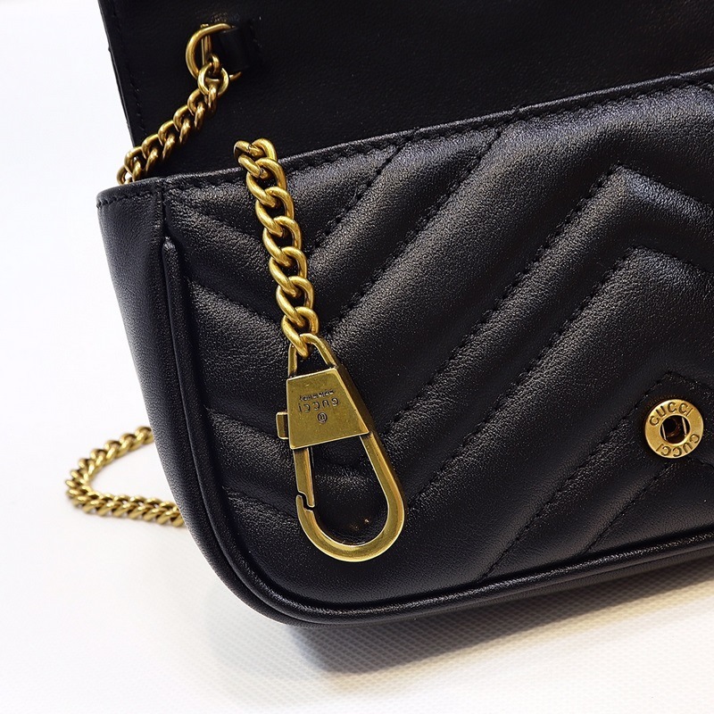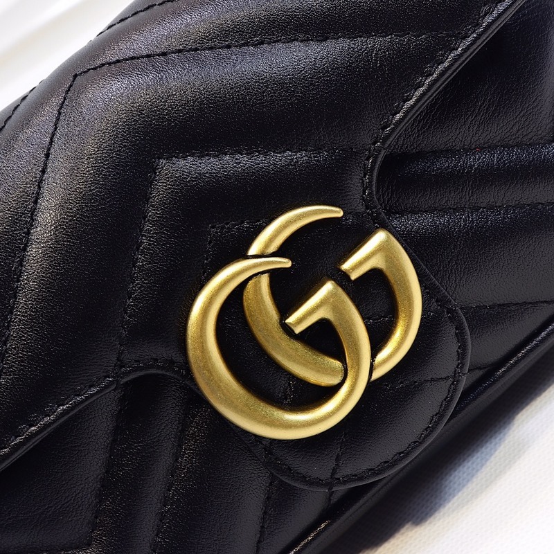 GUCCI 미니 패션 크로스 바디 파우치 수입 가죽 모델 번호: 47000433 검정색 크기: 가로 10cm x 세로 10cm x 깊이 4cm