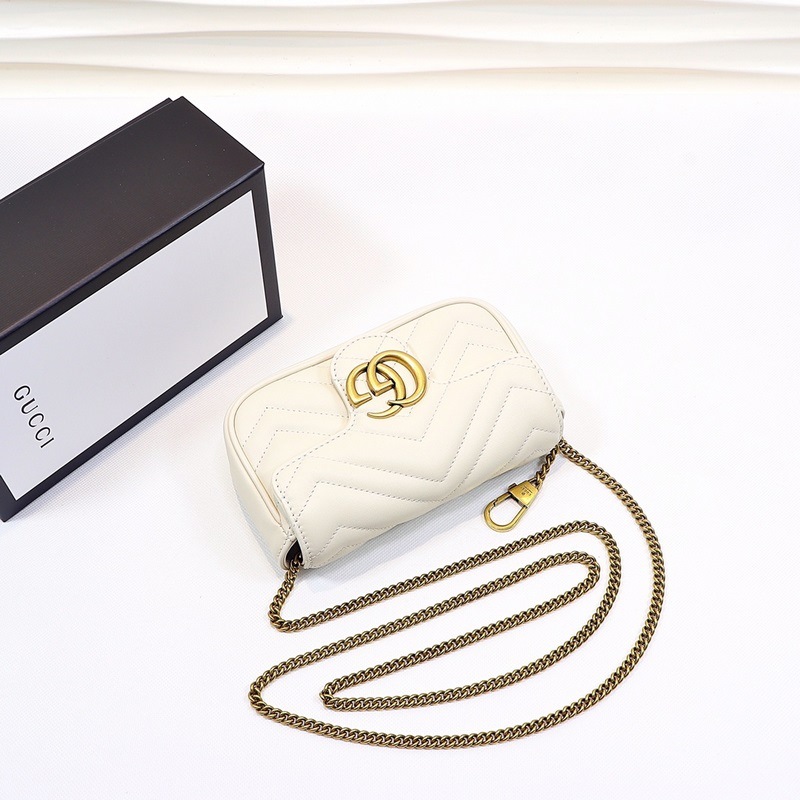 GUCCI 미니 패션 크로스 바디 백 수입 가죽 모델 번호: 47000433 흰색 크기: 10cm(가로) x 10cm(세로) x 4cm(깊이)