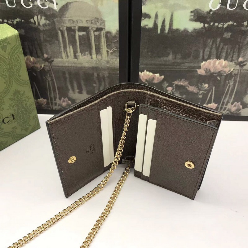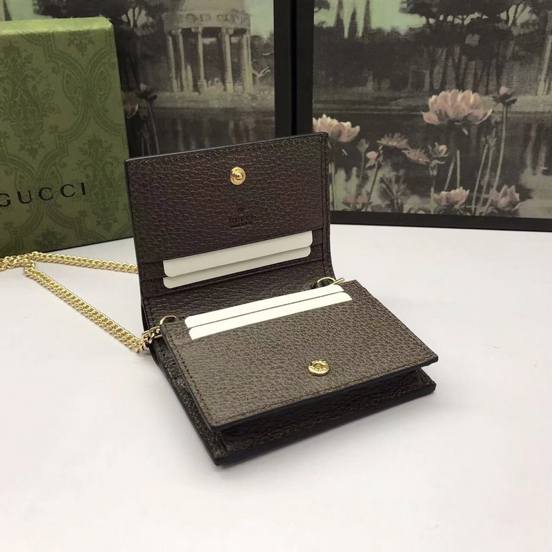 GUCCI 체인 카드 홀더 모델: 625711 색상: 갈색 가죽/갈색 PVC 크기: 11×8.5×3cm