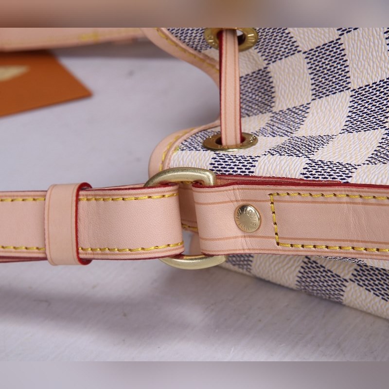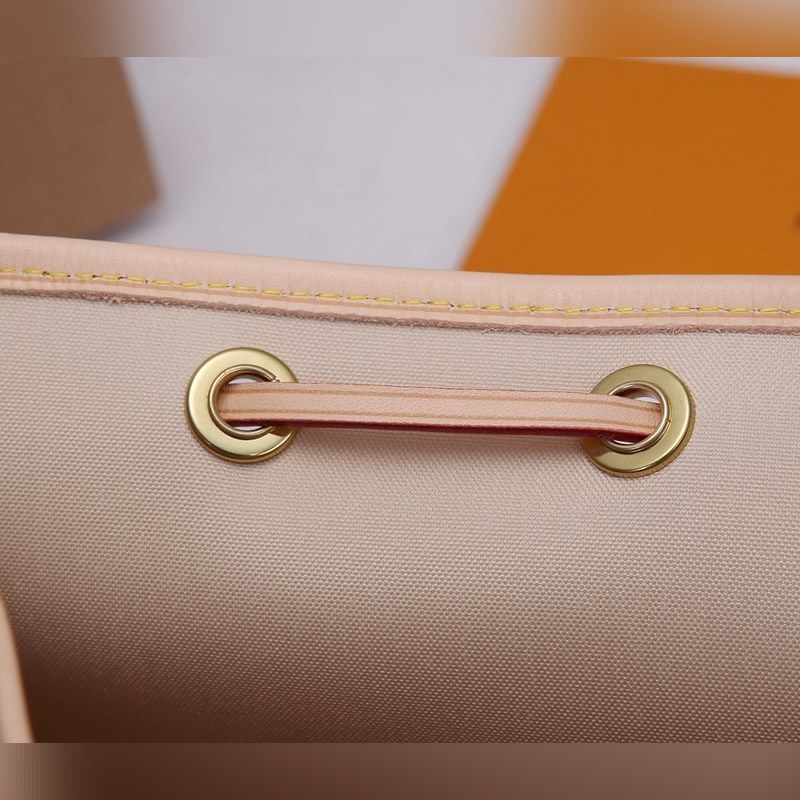 LV의 1932년 클래식 노에 백이 귀여운 미니 버전으로 재해석되었습니다. 모델: M40817 가방의 바닥은 가죽으로 보강되어 있으며 가방의 높이는 9인치 미만입니다. 모노그램 캔버스로 제작된 이 노에 백에는 오리지널 시그니처 가죽 드로스트링과 캐주얼한 크로스 바디 스타일을 위한 확장된 숄더 스트랩이 특징입니다. 시그니처 가죽 드로스트링 잠금장치 천연 소가죽 트림 패브릭 안감 D링 크기: 22 x 24 x 15cm