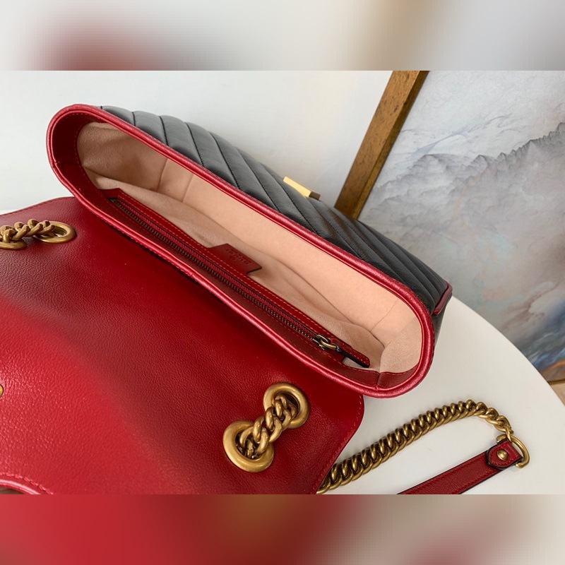 GUCCI GG 마몽트 숄더백 모델 443497 검정색과 빨간색 검은