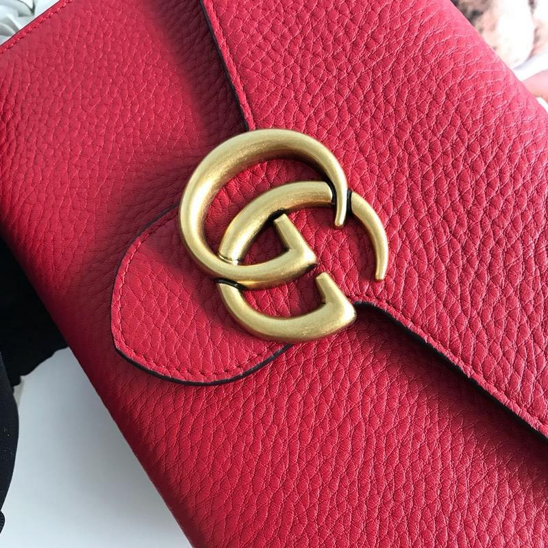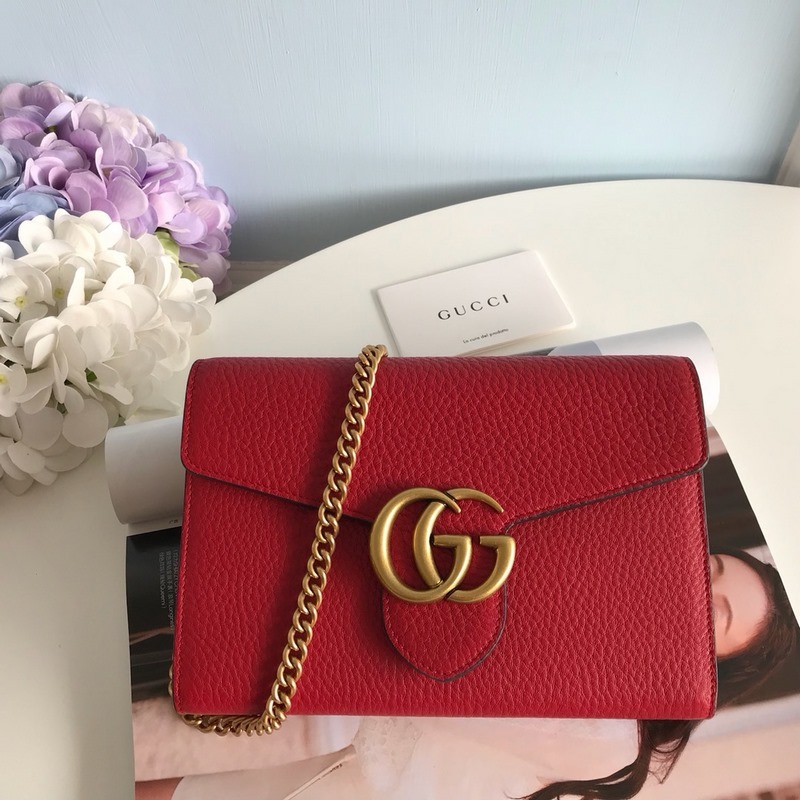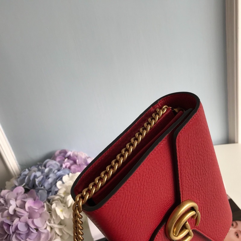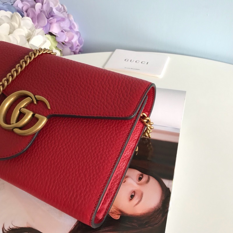 GUCCI GG 마몽트 체인 지갑 WOC 모델 체인 백 핸드백 수입 1층 리치 그레인 소가죽으로 제작되어 눈길을 사로잡는 상징적인 더블 G 금속 장식 이탈리아 수입 소가죽 크기: 20x12.5x6cm