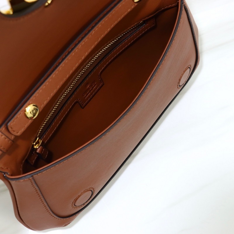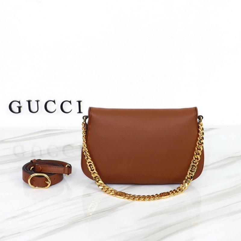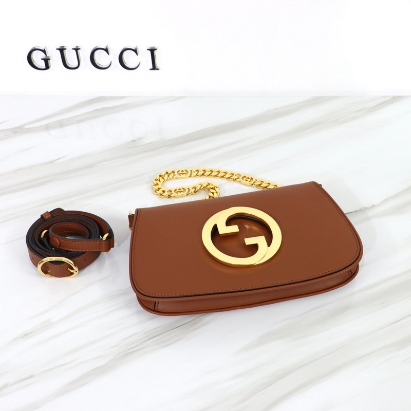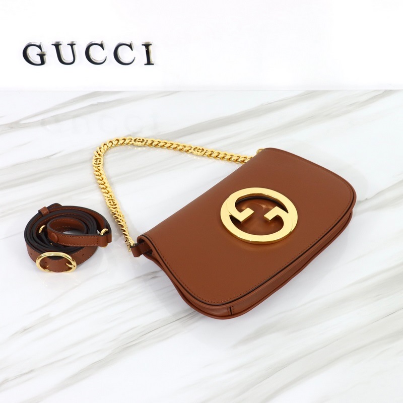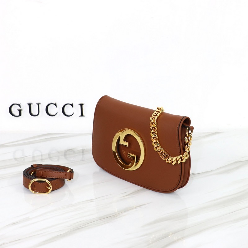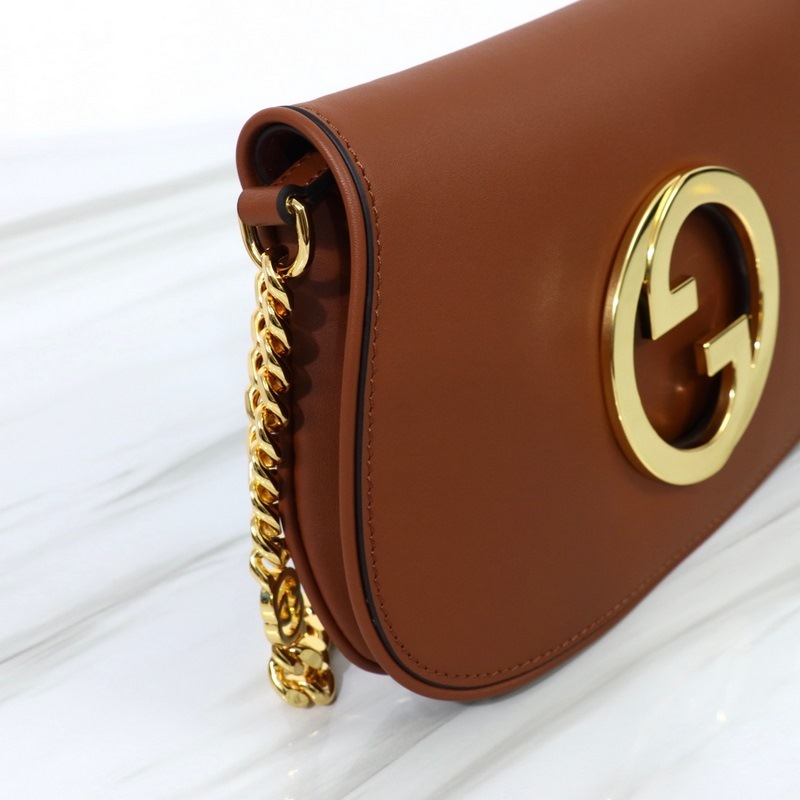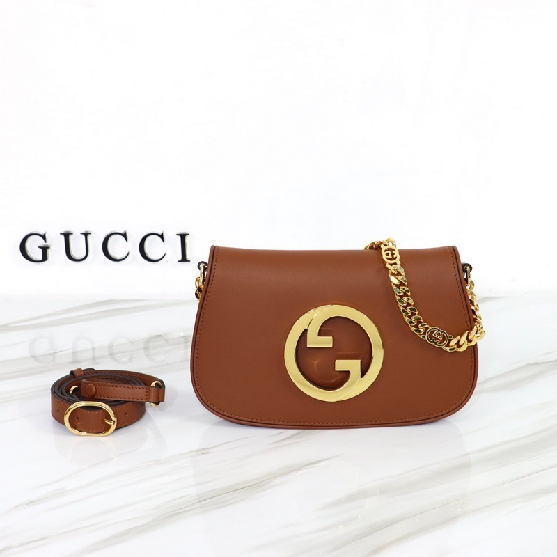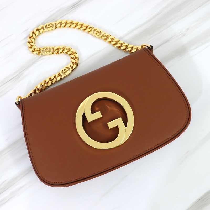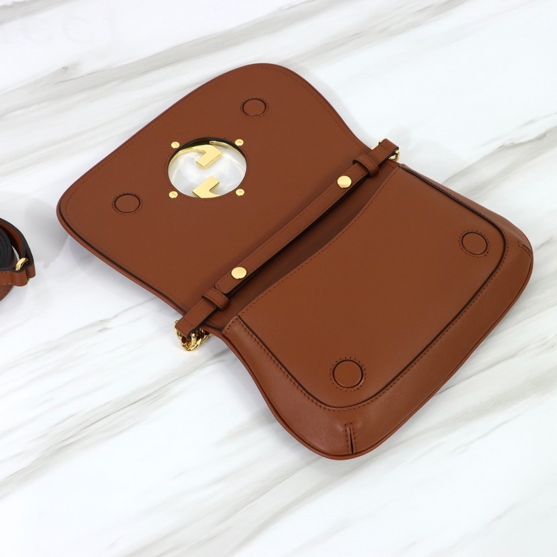 GUCCI 라운드 더블 G 로고 더블 숄더 스트랩 크로스바디 백 모델 번호: 699268 브라운 가죽 크기: W28 x H16 x D4cm