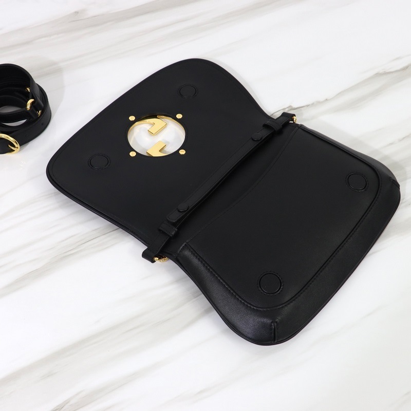 GUCCI 라운드 더블 G 로고 더블 숄더 스트랩 크로스바디 백 모델 번호: 699268 블랙 가죽 크기: W28 x H16 x D4cm