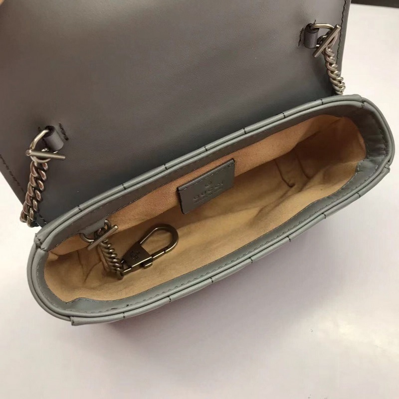 GUCCI 마몽트 시리즈 체인 미니 크로스바디 백 모델 번호: 476433 G 패밀리의 최신 Marmont 시리즈 체인 미니 핸드백은 블랙 퀼팅 가죽과 레트로 실버 액세서리로 구성되어 있어 많은 젊은 여성들의 마음을 사로잡았습니다! 글로벌 인재에게도 꼭 필요한 다목적 아이템입니다! 최고 색상: 회색 체크무늬 크기: 16.5 x 10 x 4.5cm