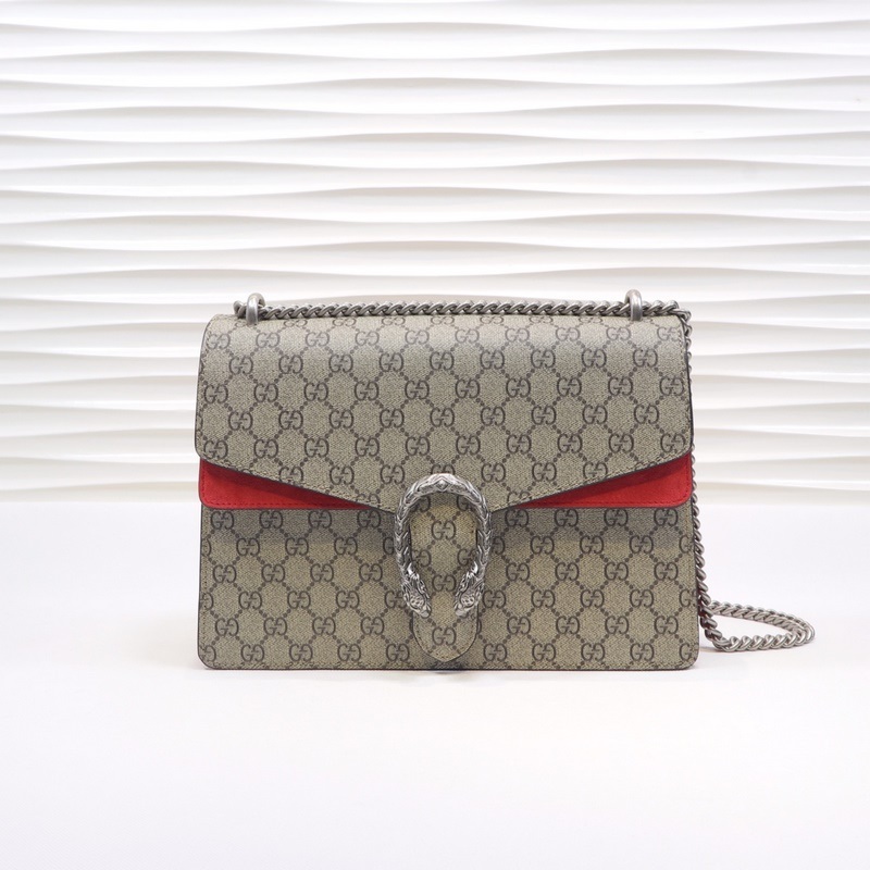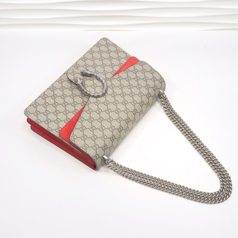 GUCCI 디오니소스 체인백 크로스바디백 모델 번호: 403348 살구색 무광 레드 내부 무광 가죽 크기: W30 x H21 x D9cm