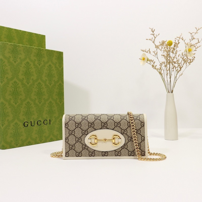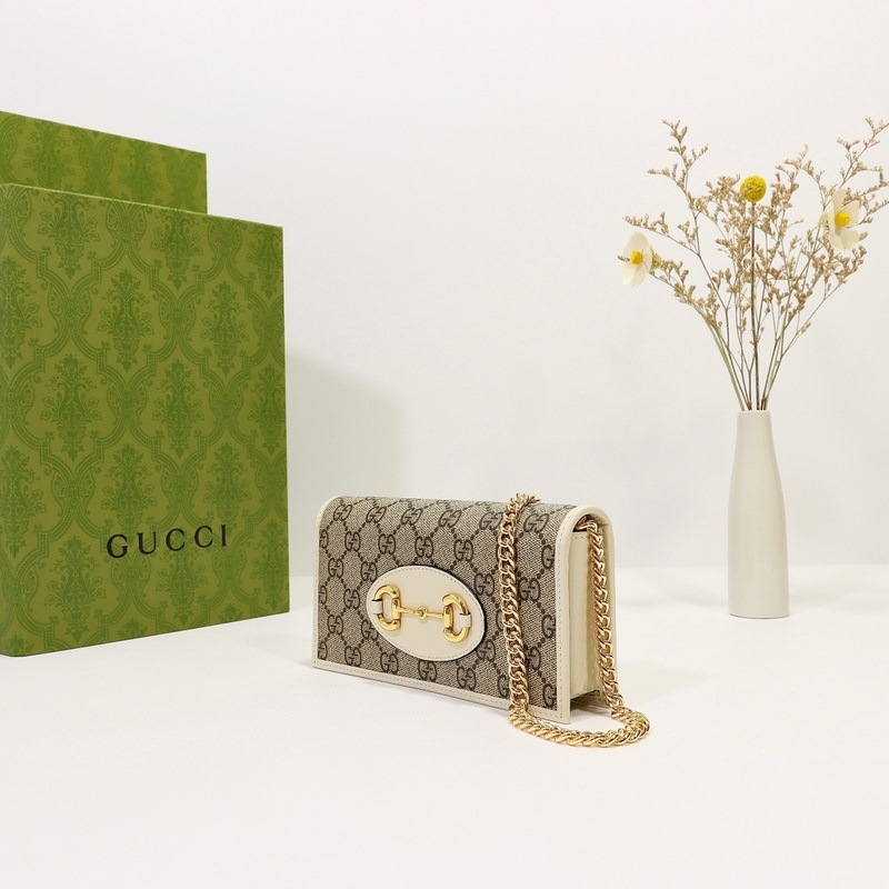 GUCCI 인터로킹 지갑 체인 크로스바디 백 모델: 621892 베이지