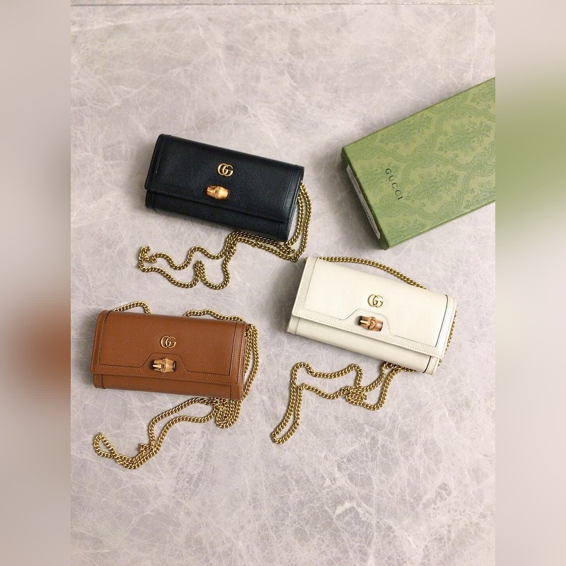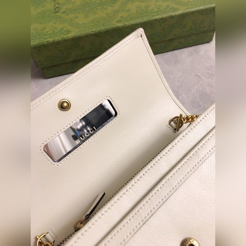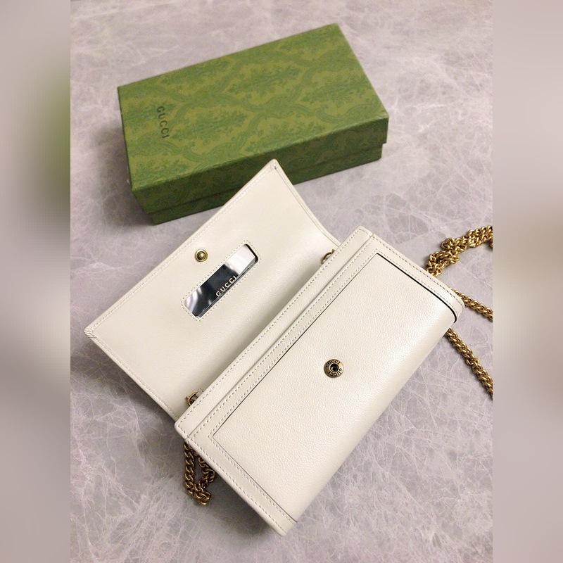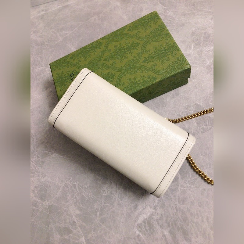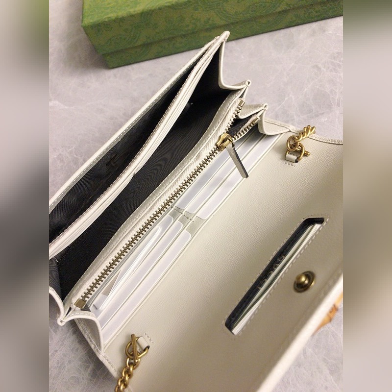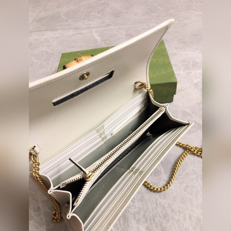 GUCCI 더블 G 로고 체인 카드 홀더 크로스바디 백 모델: 658243 체인백은 독특한 대나무 매듭 디자인이 특징이며 디자인 미학에서 소재의 유연한 사용을 강조합니다. 체인 지갑은 오리지널 공장 송아지 가죽으로 만들어졌습니다. 크기: 19*10*3.5cm