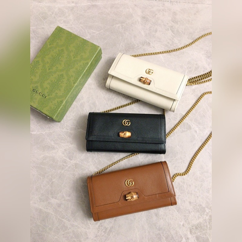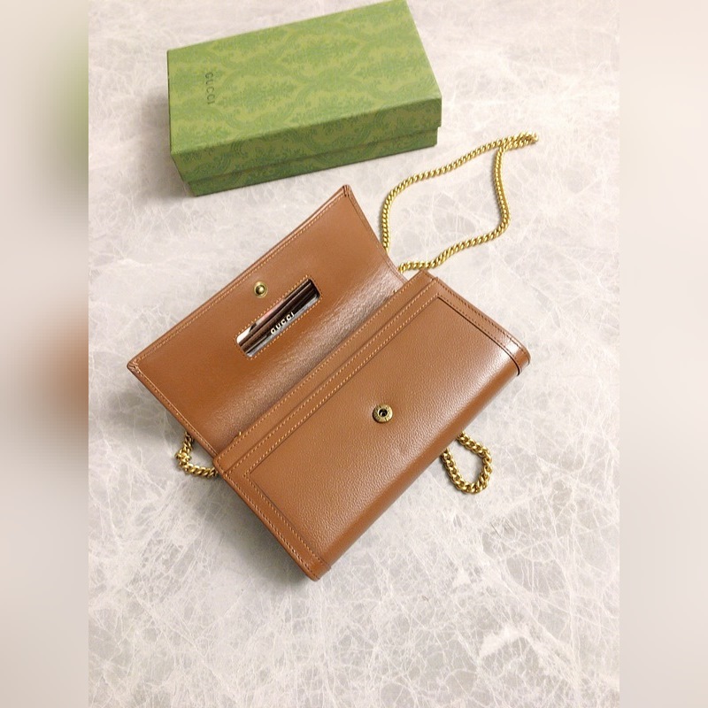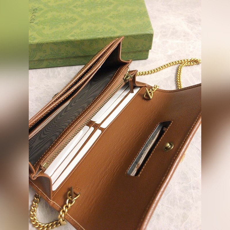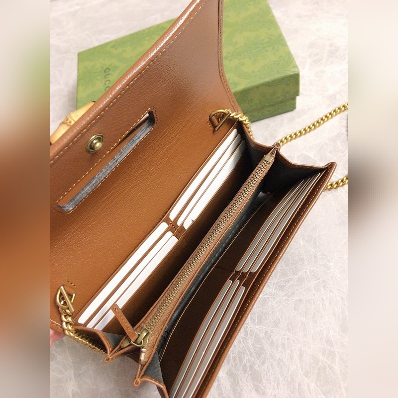 GUCCI 더블 G 로고 체인 카드 홀더 크로스바디 백 모델: 658243 체인백은 독특한 대나무 매듭 디자인으로 디자인 미학에서 소재의 유연한 사용을 강조합니다. 체인 지갑은 오리지널 공장 송아지 가죽으로 만들어졌습니다. 크기: 19*10*3.5cm