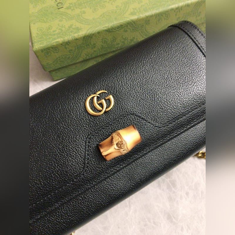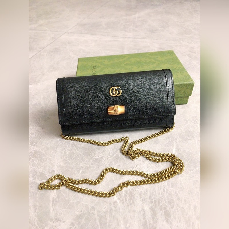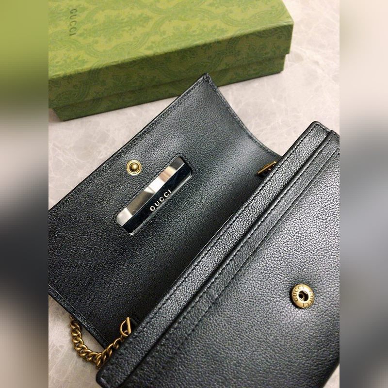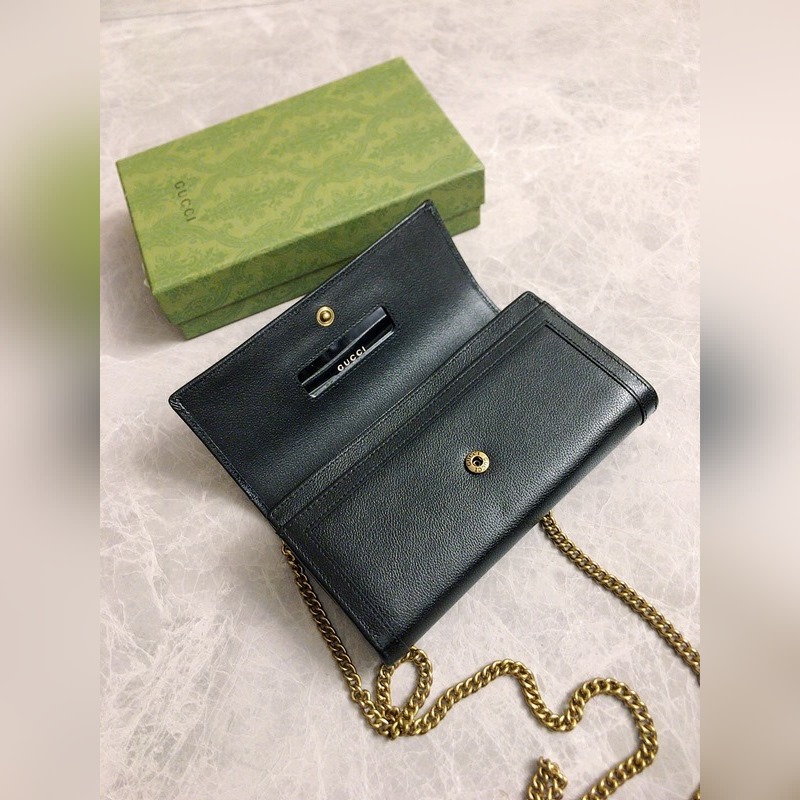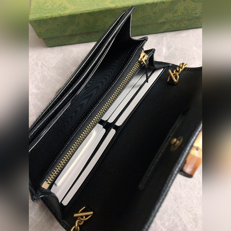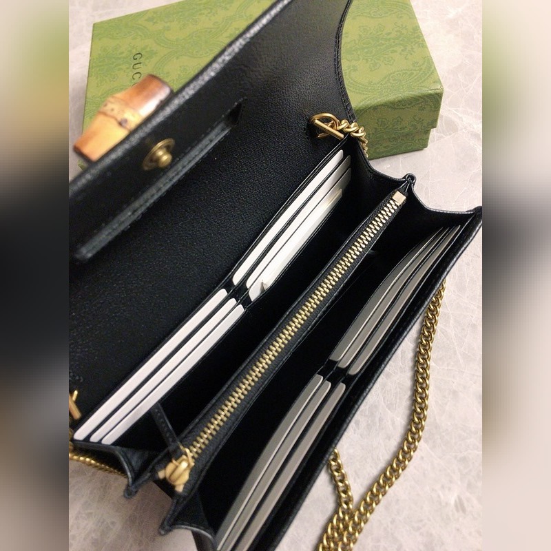 GUCCI 더블 G 로고 체인 카드 홀더 크로스바디 백 모델: 658243 체인백은 독특한 대나무 매듭 디자인으로 디자인 미학에서 소재의 유연한 사용을 강조합니다. 체인 지갑은 오리지널 공장 송아지 가죽으로 만들어졌습니다. 크기: 19*10*3.5cm