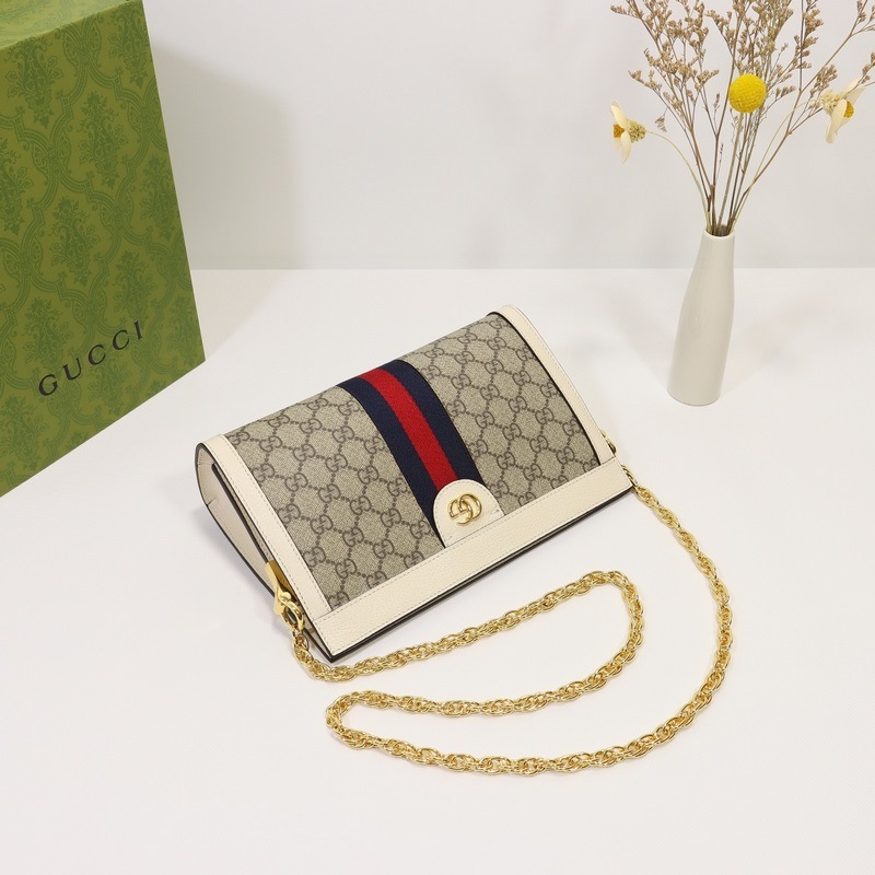 GUCCI 더블 G 로고 체인 파우치 모델 번호: 503877 아몬드 화이트 크기: W26 x H17.5 x D8cm