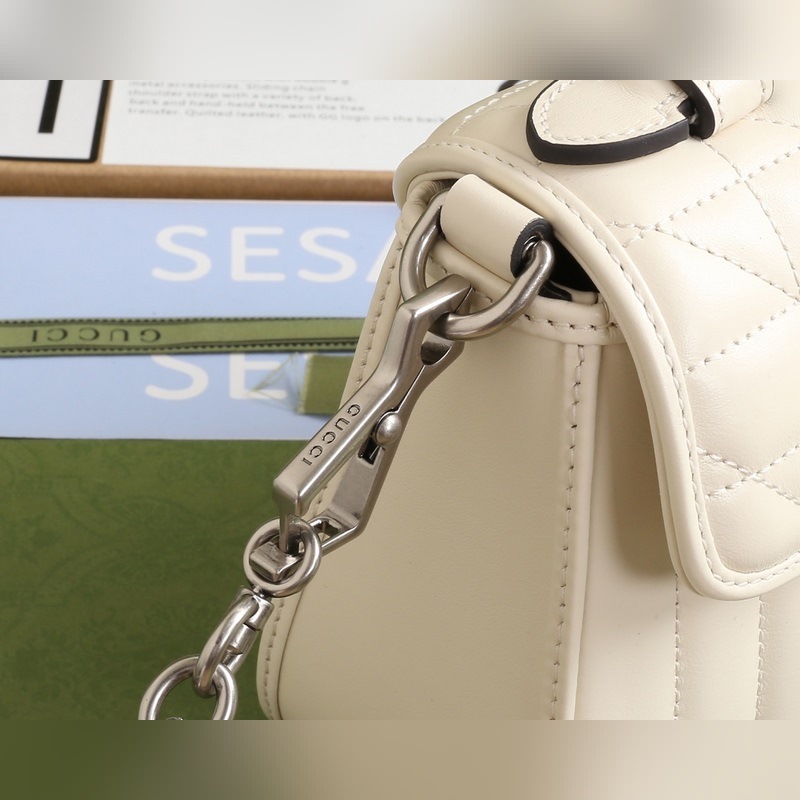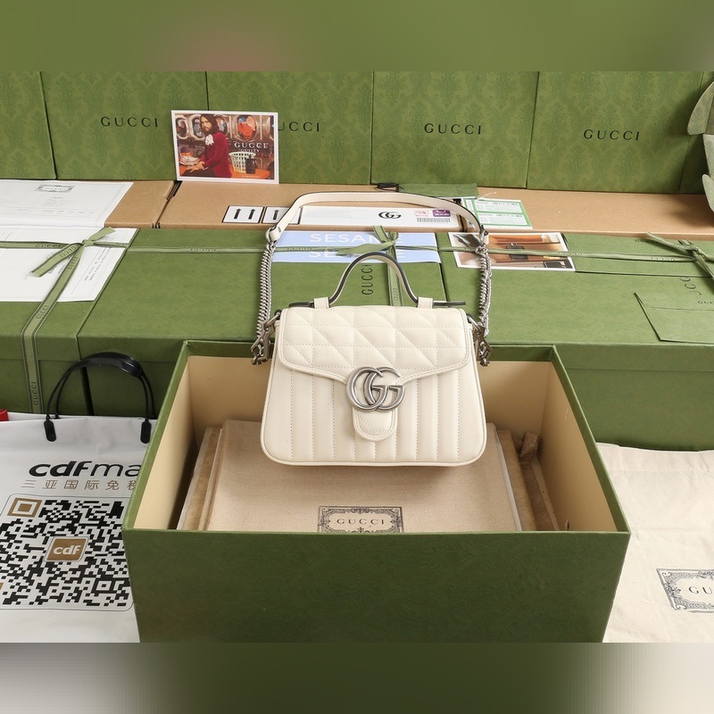GUCCI GG 마몽트 시리즈 숄더 크로스바디 핸드백 모델 번호: 583571 화이트 기하학 QGG 마몽트 시리즈 숄더 크로스바디 핸드백 수입된 천연 가죽 오리지널 하드웨어 모든 스티치에 수입된 실 사용 이탈리아 공장에서 수입한 가죽 시리즈 새로운 자물쇠 시리즈는 수입 가죽으로 제작되어 출시되었습니다. 이 새로운 시리즈는 사계절에 맞추어 눈길을 사로잡는 색상! 이중 G 글자는 다양한 매력을 만들어 냅니다. 그리고 자유롭게 믹스 앤 매치할 수 있는 디자인 컨셉! 정말 매력적이라고 말해야겠어요 크기: 21cm x 15.5cm x 8cm