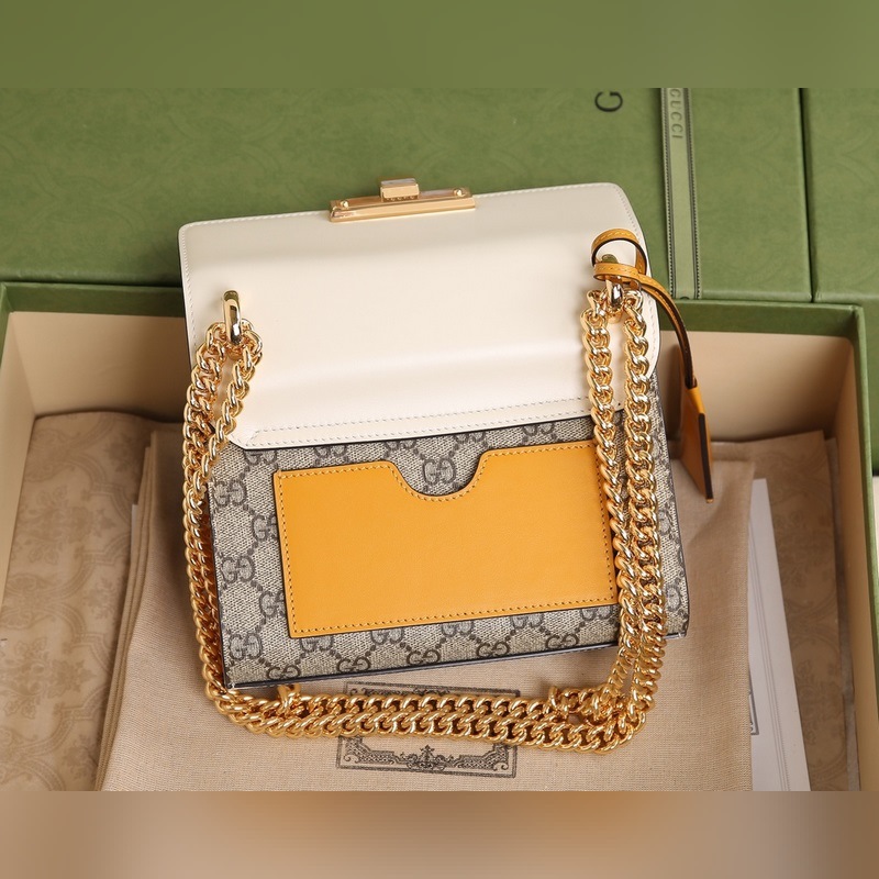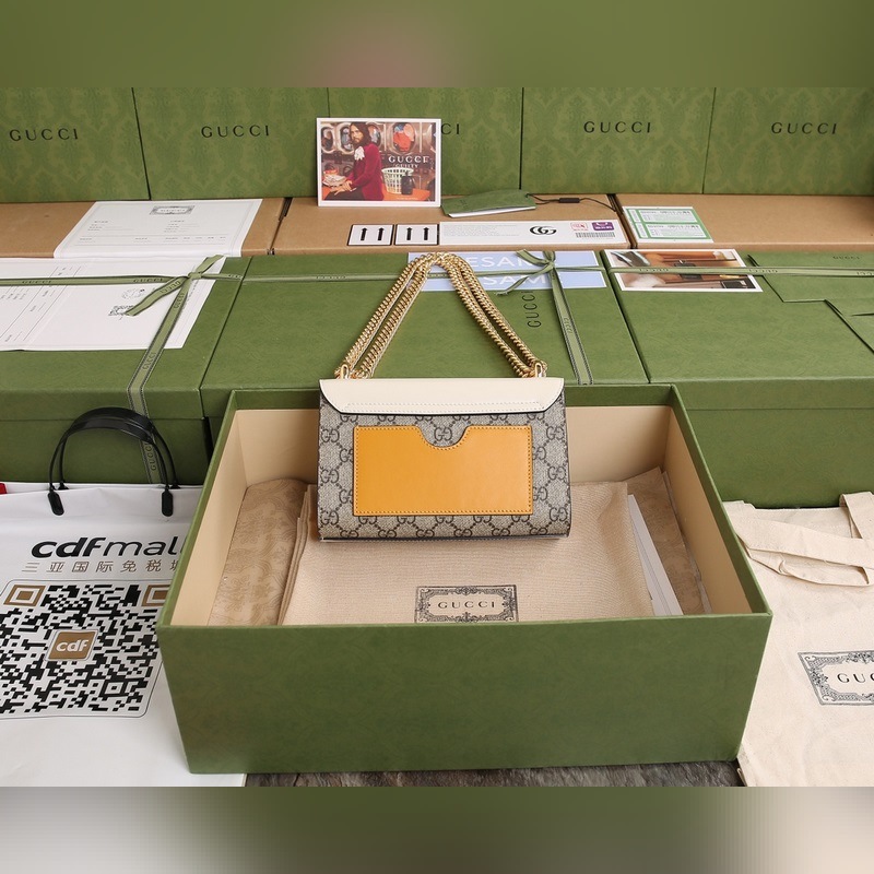 GUCCI 클래식 플로럴 패턴 체인 파우치 크로스바디 백 모델 번호: 409487 노란색과 흰색 가죽 GG 레트로 벨트백 시리즈 수입된 천연 가죽 오리지널 하드웨어 모든 스티치에 수입된 실 사용 이탈리아 공장에서 수입한 가죽 시리즈 새로운 자물쇠 시리즈는 수입 가죽으로 제작되어 출시되었습니다. 이 새로운 시리즈는 사계절에 맞추어 눈길을 사로잡는 색상! 이중 G 글자는 다양한 매력을 만들어 냅니다. 그리고 자유롭게 믹스 앤 매치할 수 있는 디자인 컨셉! 정말 매력적이라고 말해야겠어요 크기: 20.5cm x 13cm x 7.5cm