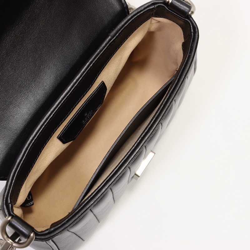 GUCCI 패션 크로스 바디 파우치 수입 가죽 모델 번호: 0008300071 검은색 가죽 체크무늬 크기: 가로 21cm x 세로 10cm x 높이 8cm