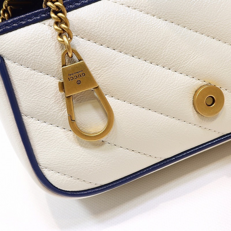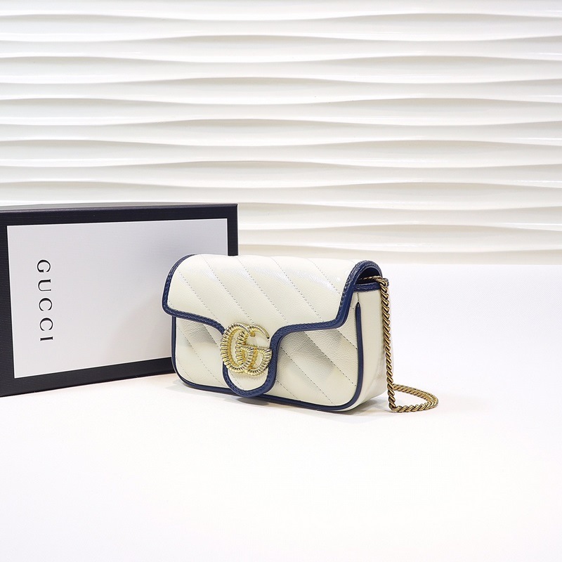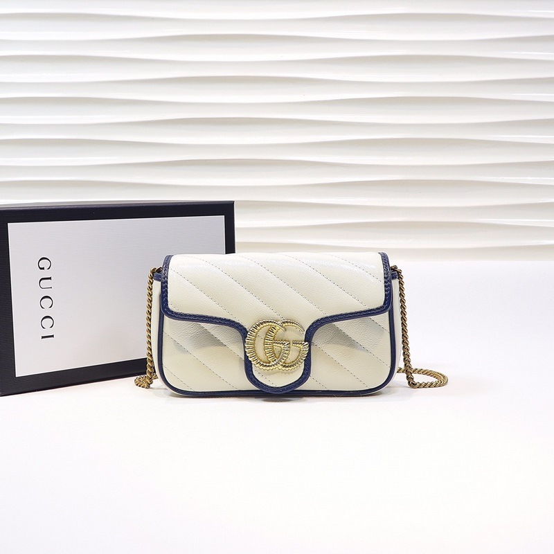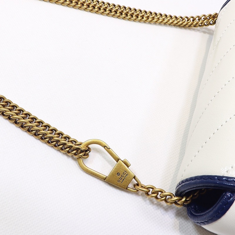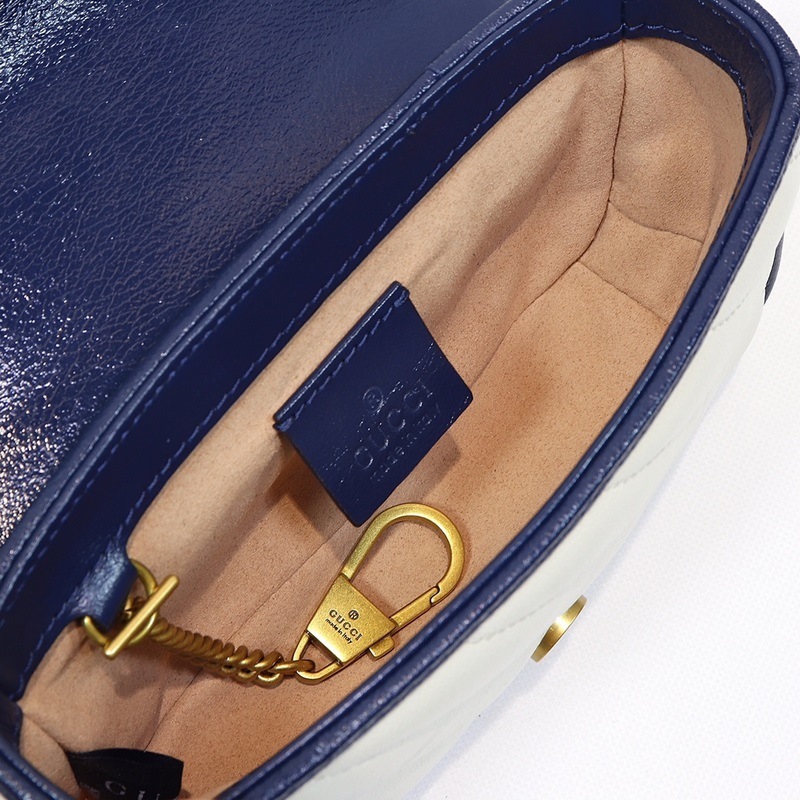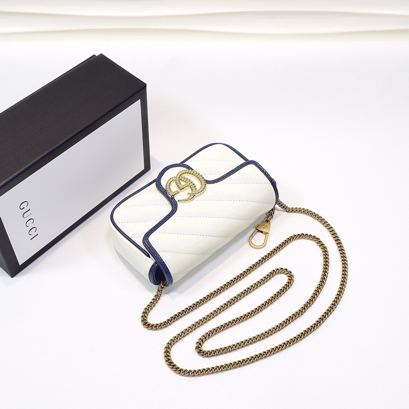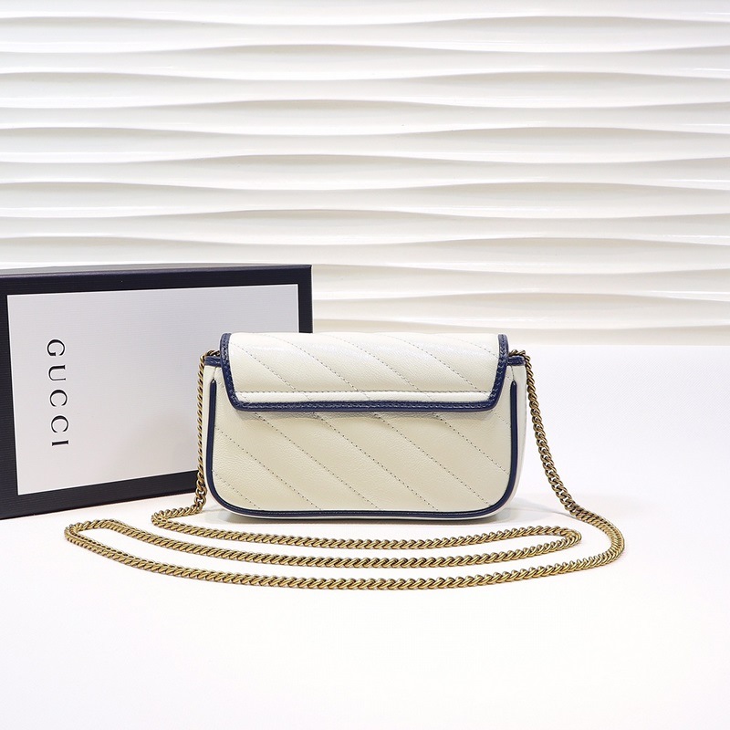 GUCCI 미니 패션 크로스 바디 백 수입 가죽 모델 번호: 0007490009 흰색과 파란색 크기: 가로 17cm x 세로 11cm x 두께 4cm