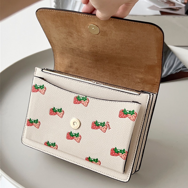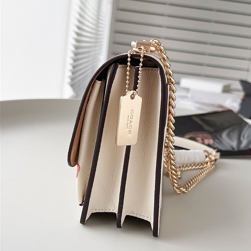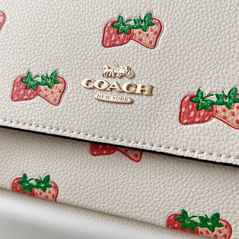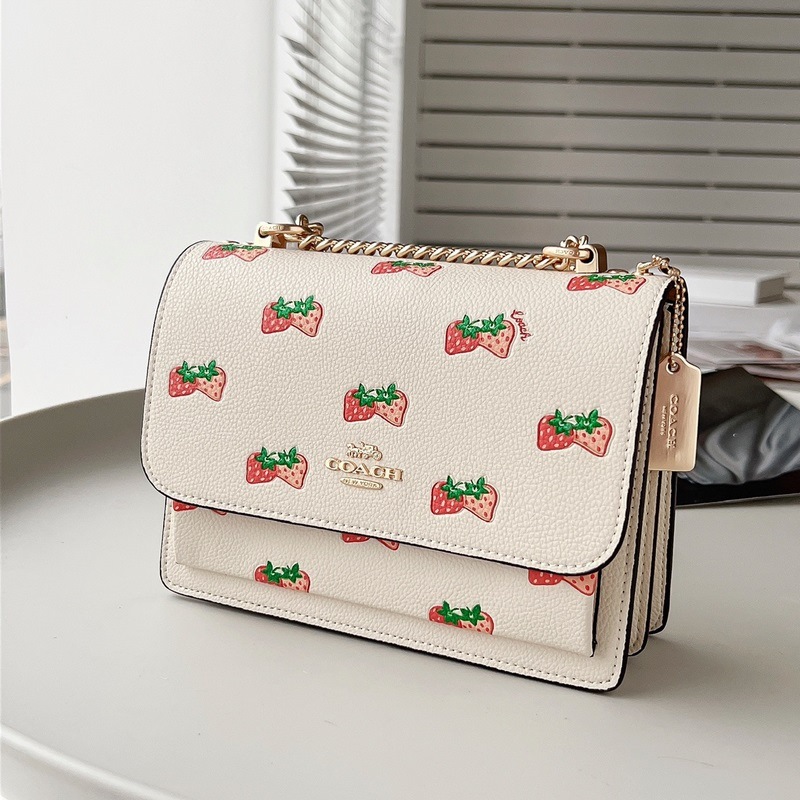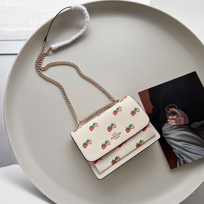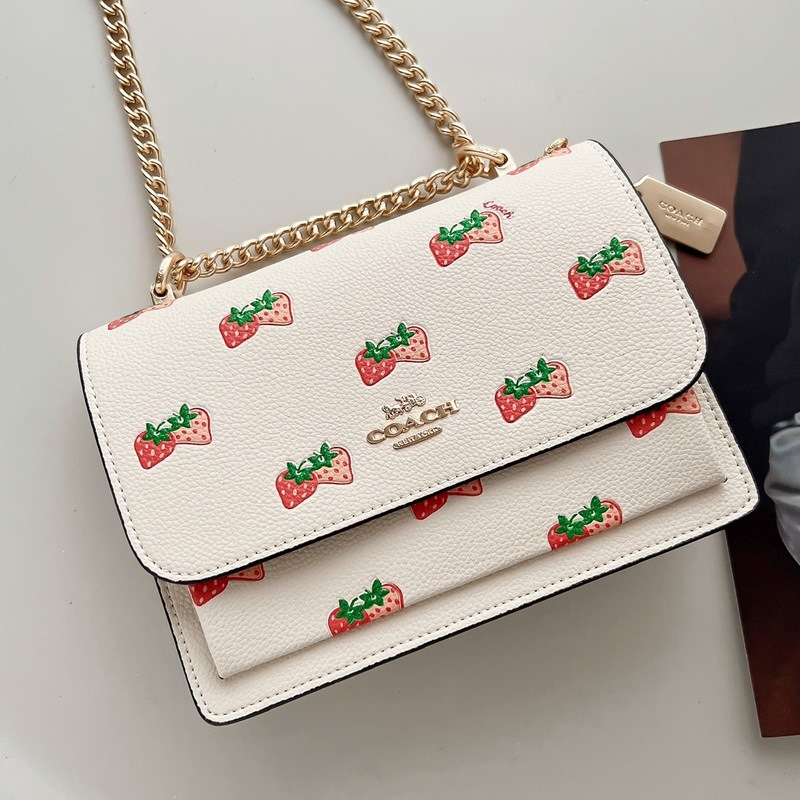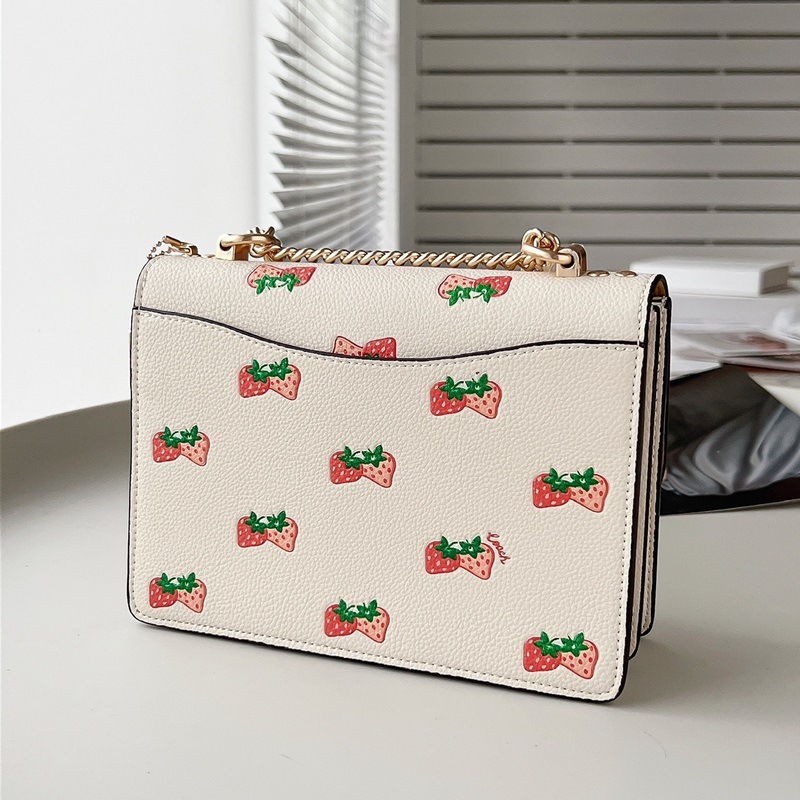 COACH/COACH 상품 번호: CB599 클리어 플랩 체인 오르간 가방 딸기색 조합 매우 귀여운 조합 어깨에 메거나 몸에 걸쳐 입을 수 있습니다. 흰색과 딸기색 조합 슈퍼 조합 크기: 22*16*6cm