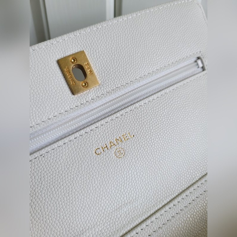 샤넬 골드 코인 파인 볼 소가죽 WOC 행운의 가방 골드 체인과 버튼