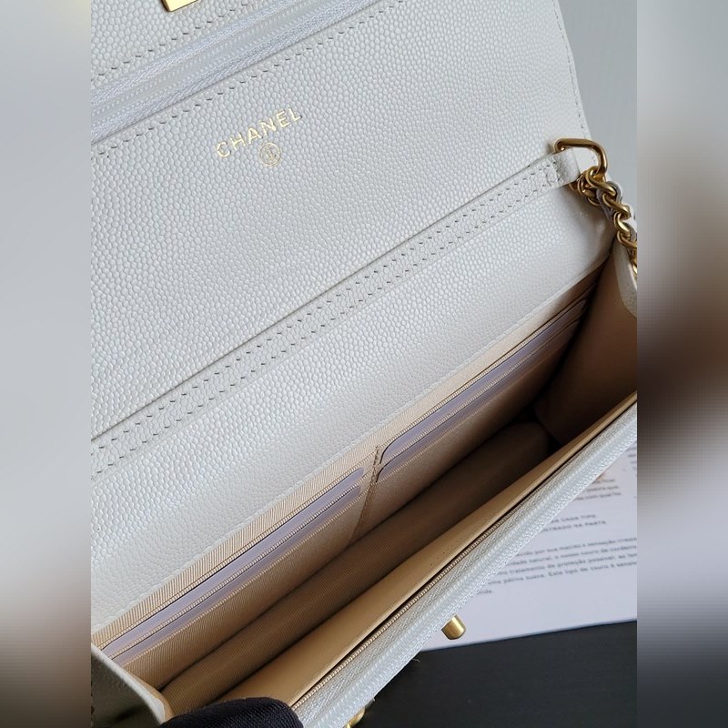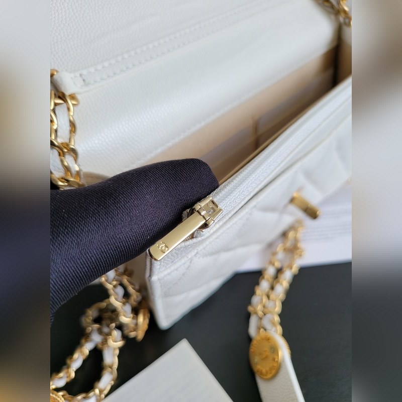 샤넬 골드 코인 파인 볼 소가죽 WOC 행운의 가방 골드 체인과 버튼