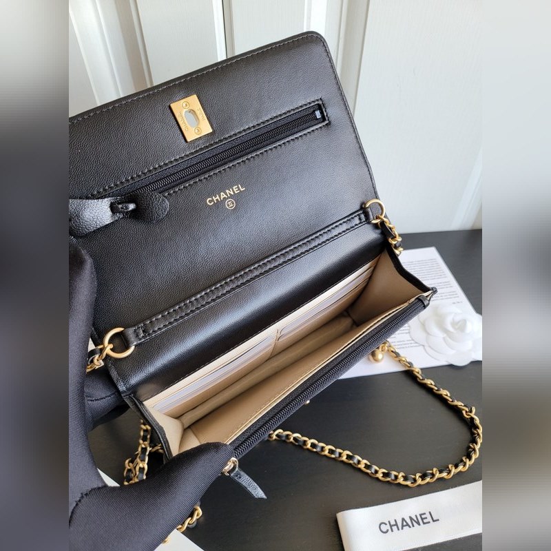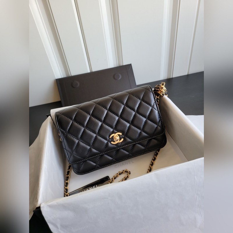 샤넬 램스킨 CF WOC 다이아몬드 패턴 가방 월넛 골드 볼 조절식 체인 크로스바디 백 크기: 19.2*12.3*3.5cm