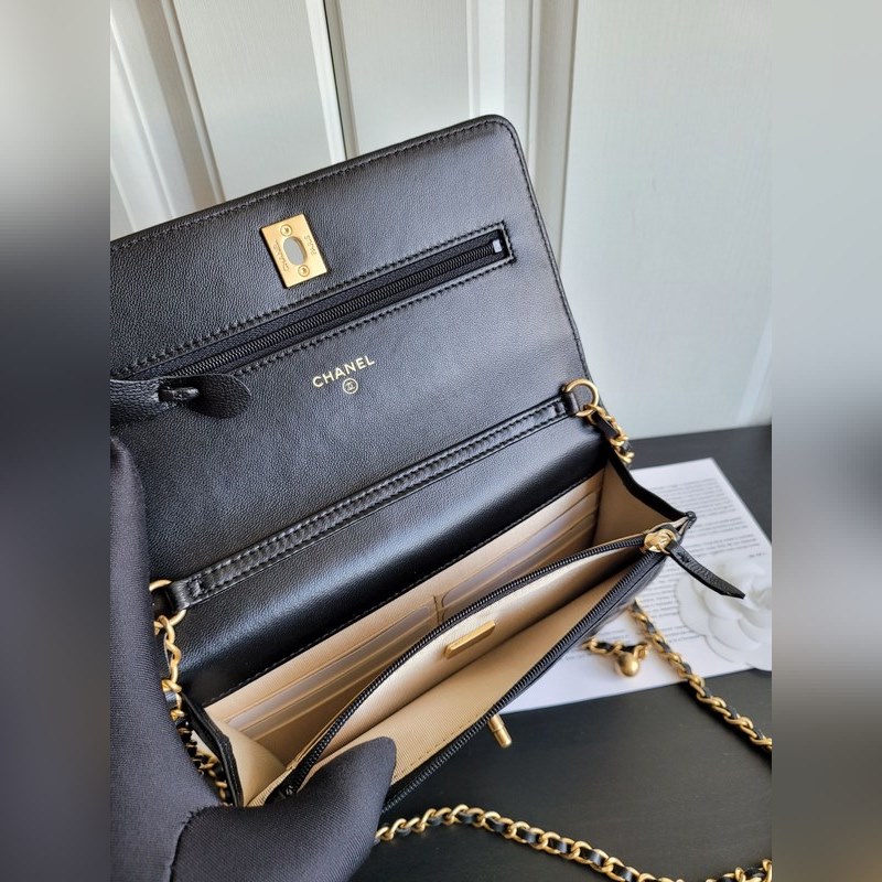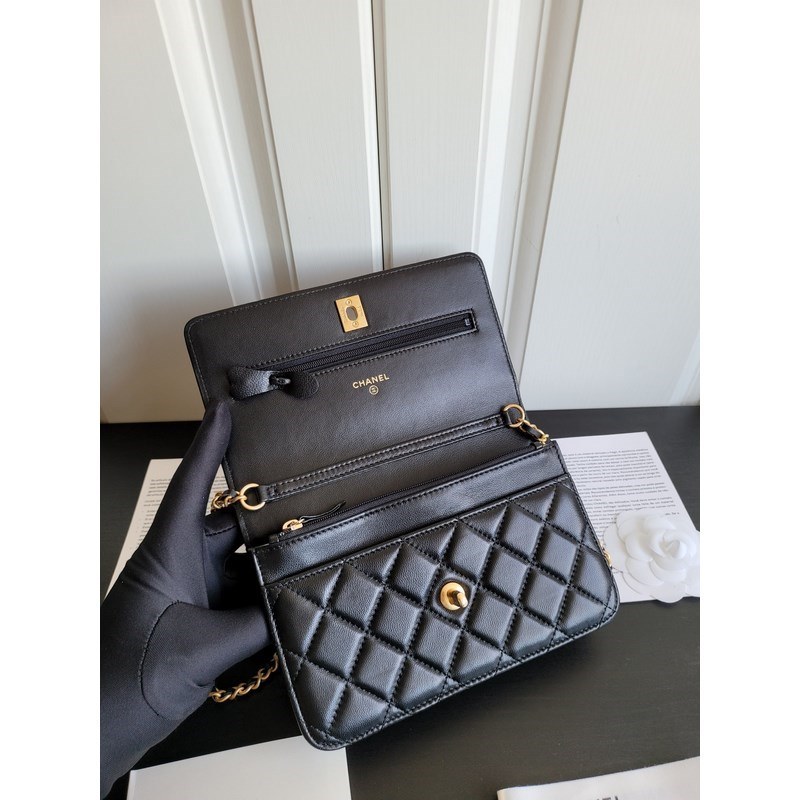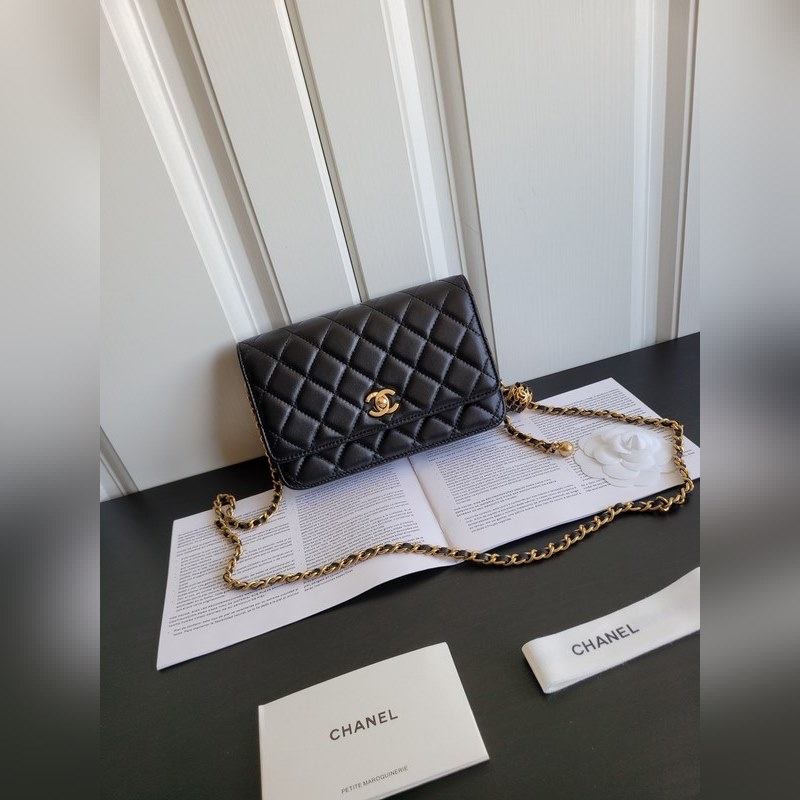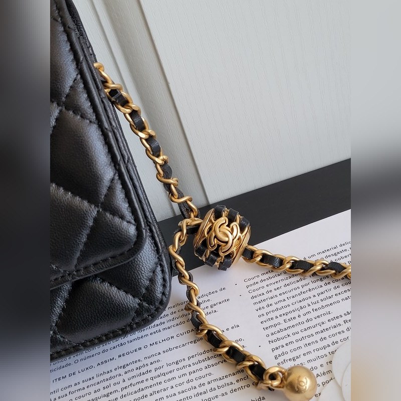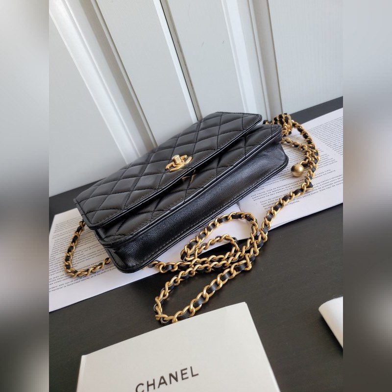 샤넬 램스킨 CF WOC 다이아몬드 패턴 가방 월넛 골드 볼 조절식 체인