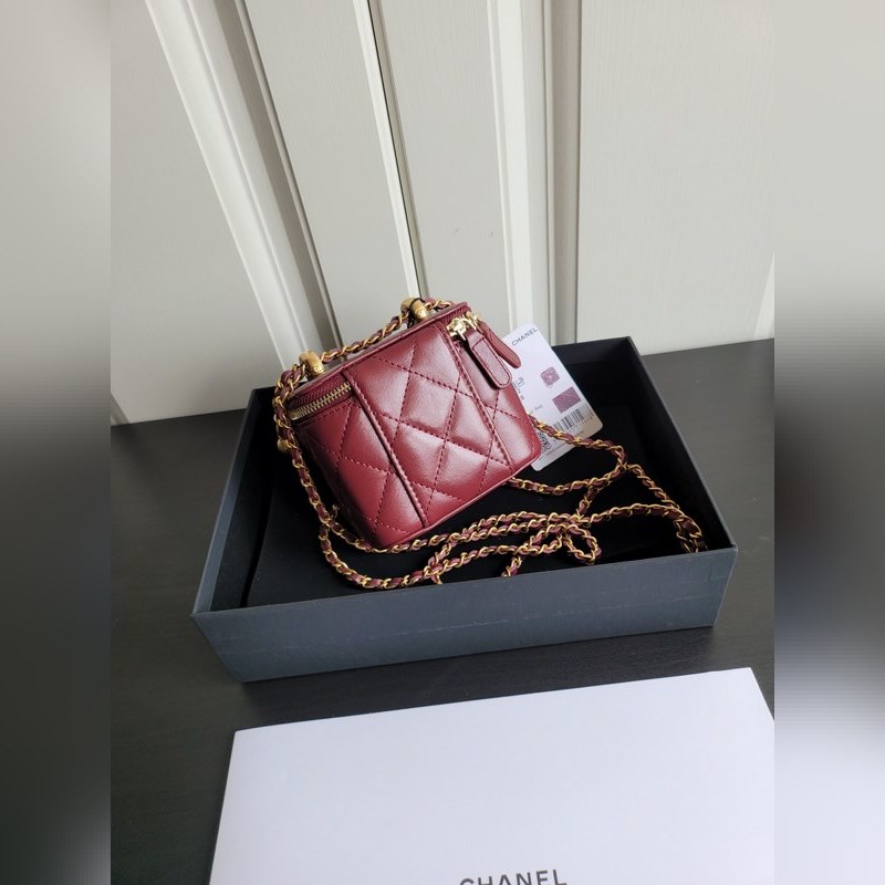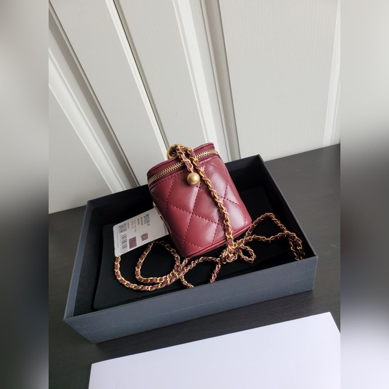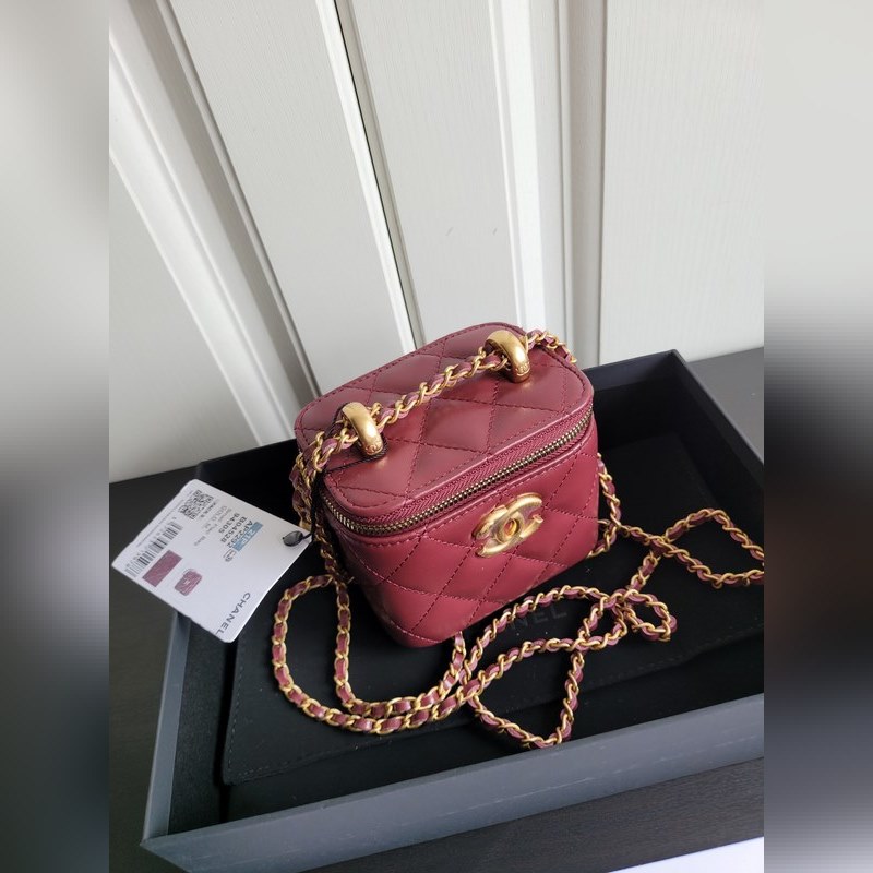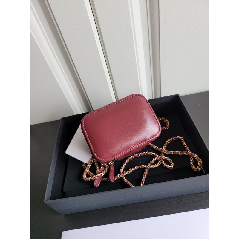 샤넬 수입 오일 왁스 소가죽 더블 골드 볼 컴팩트 케이스 작은 보관함 크기: 11*8.5*7cm