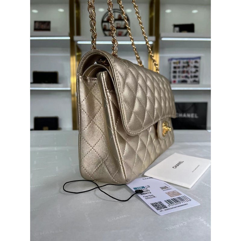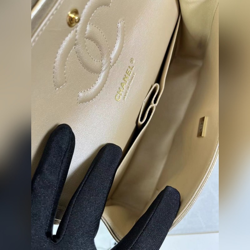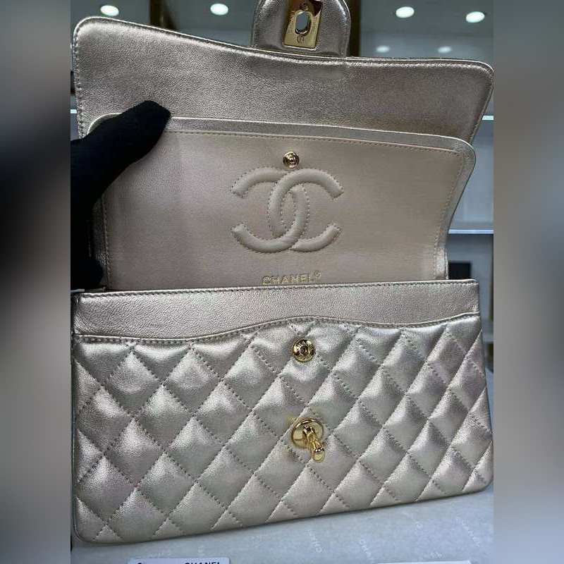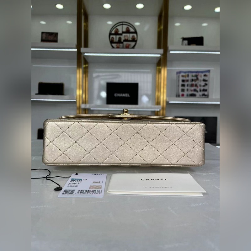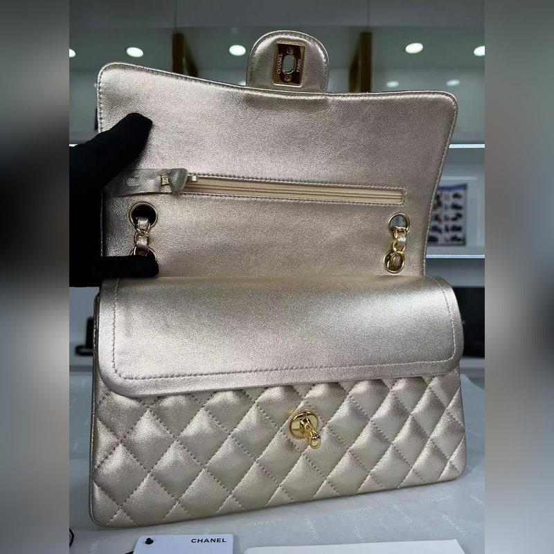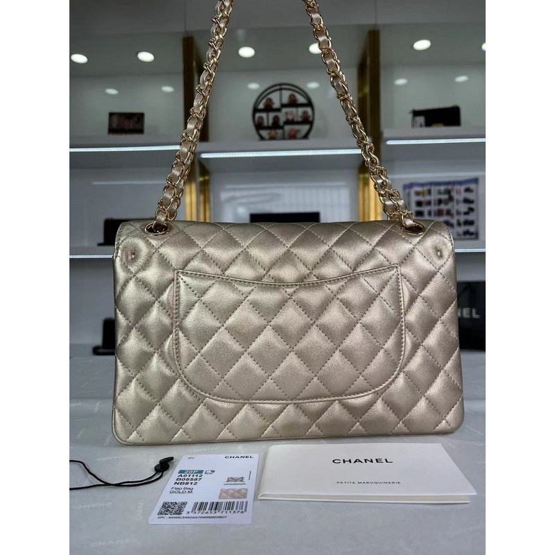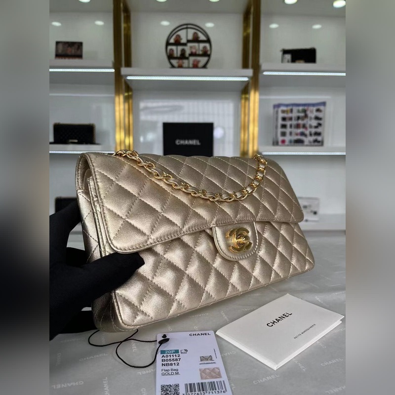 CHANEL 모델 A01112 클래식 핸드백(플랩 포함) 소재: 양가죽과 금색 금속 색상: 금색 크기: 15.5×25.5×6.5cm