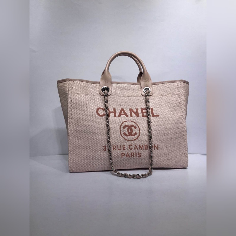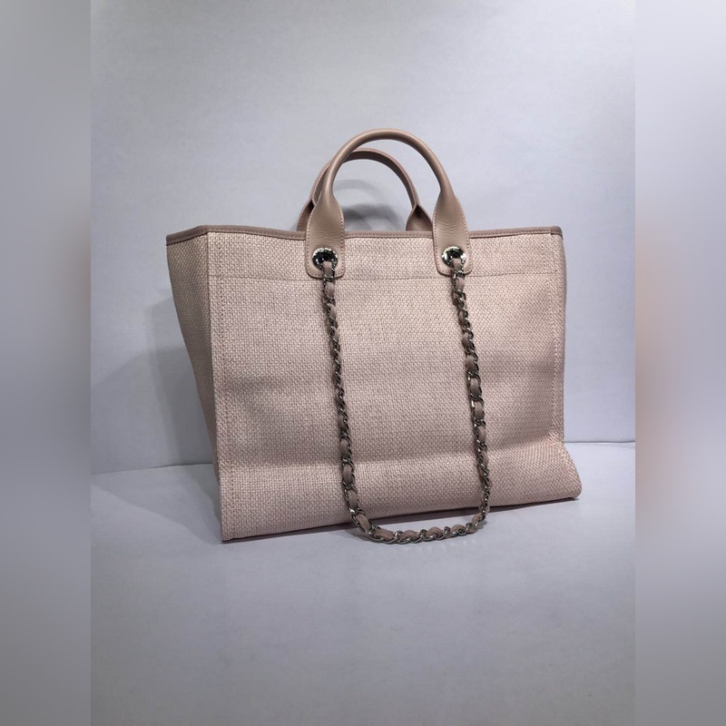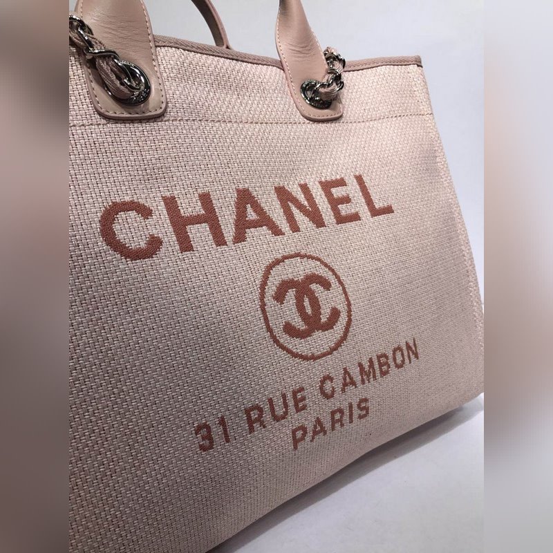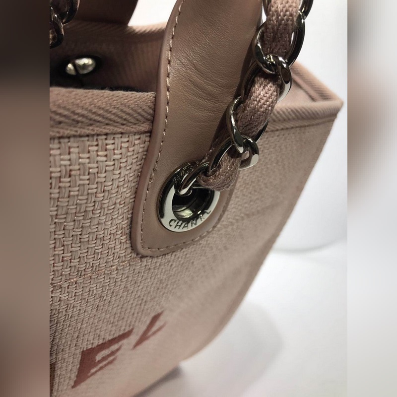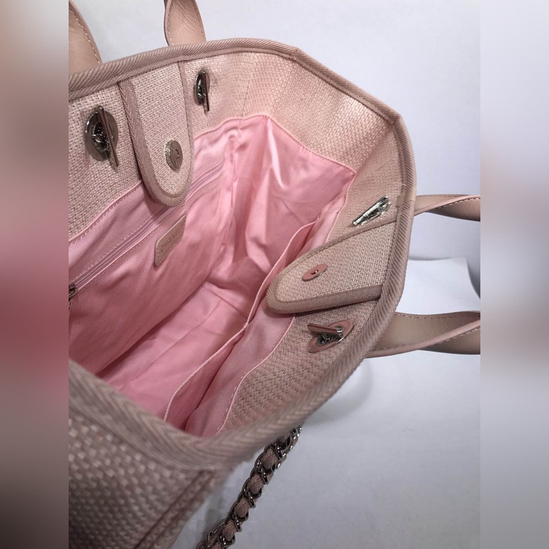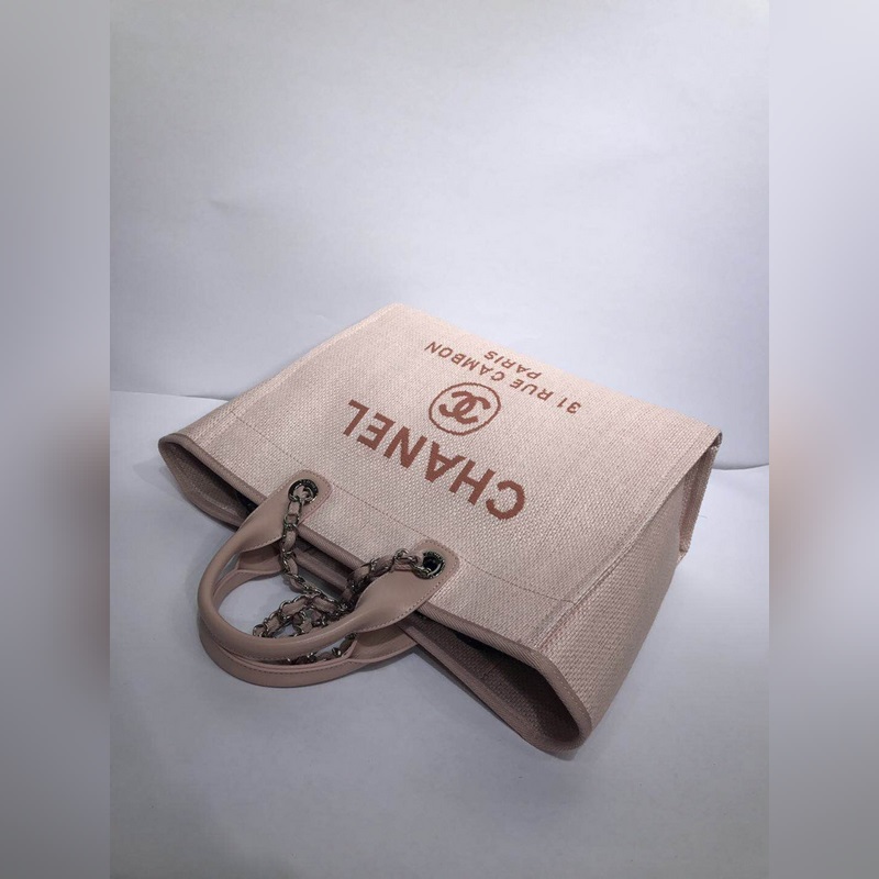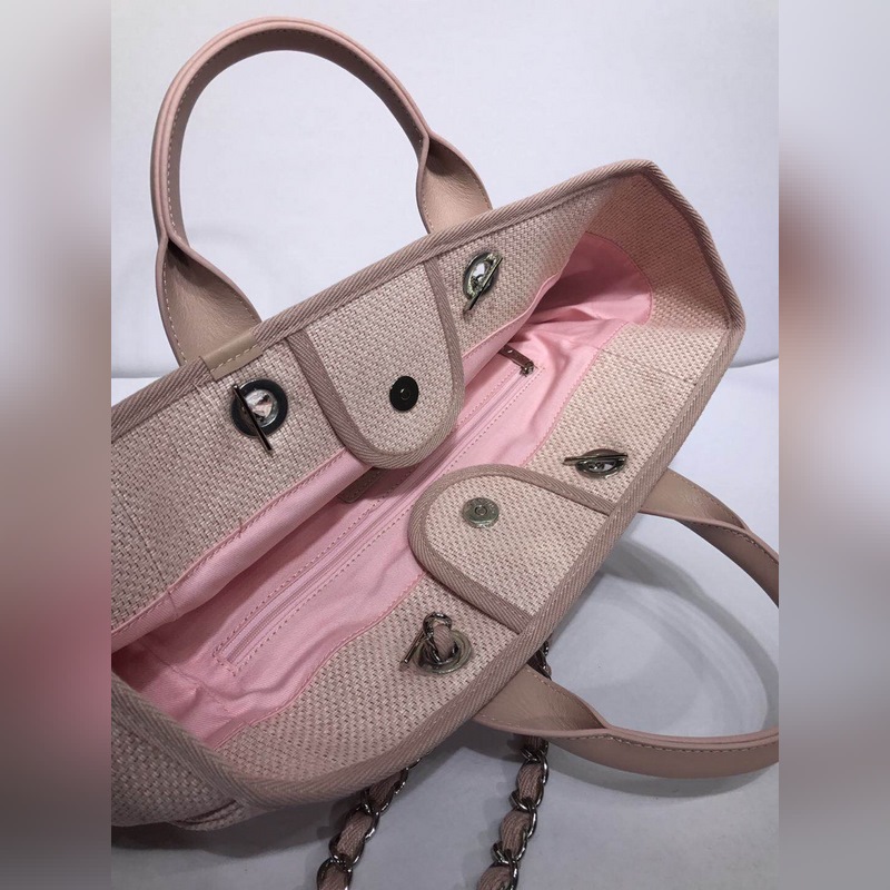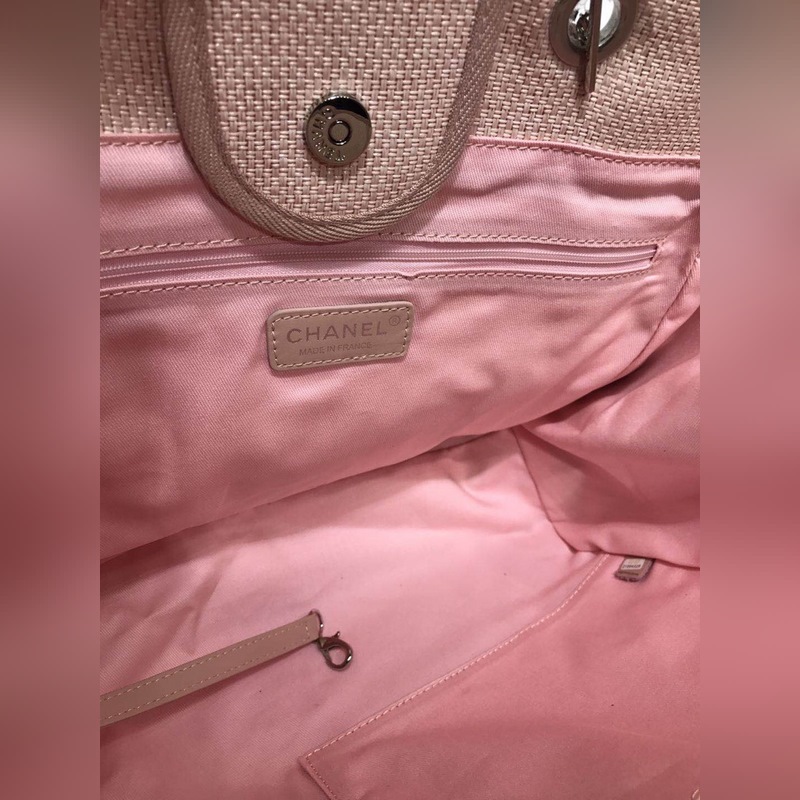 CHANEL 모델 A66941 데님 캔버스 여성 캐주얼 쇼핑 토트 숄더 비치백 소재: 핑크 데님에 흰색 로고/핑크 안감/흰색 하드웨어 색상: 분홍색 크기: 39*30*22cm