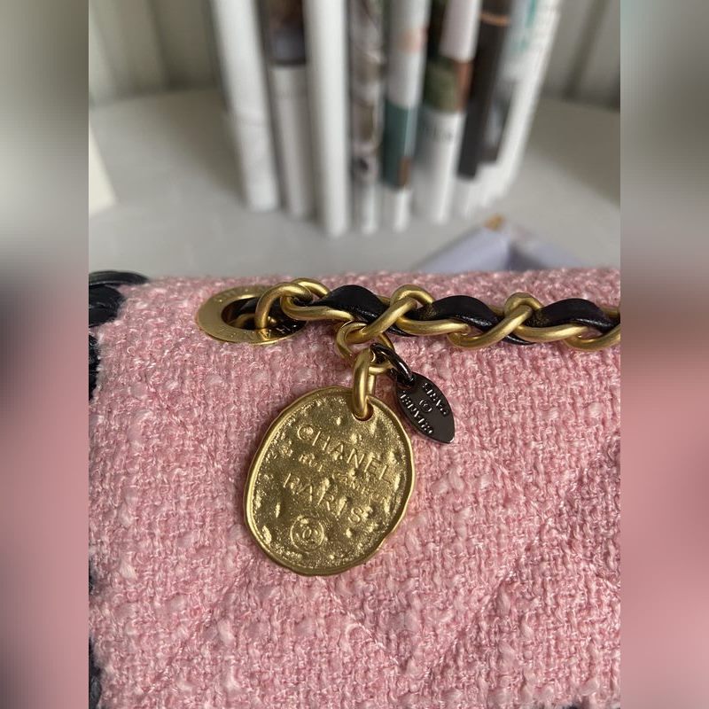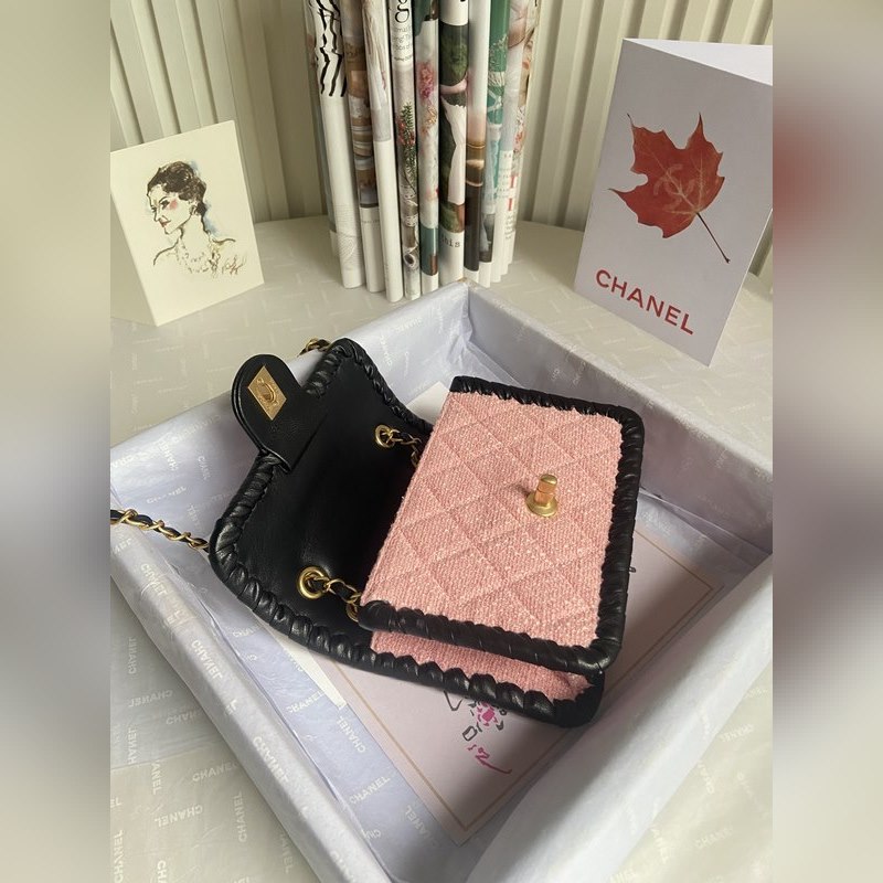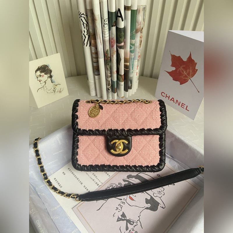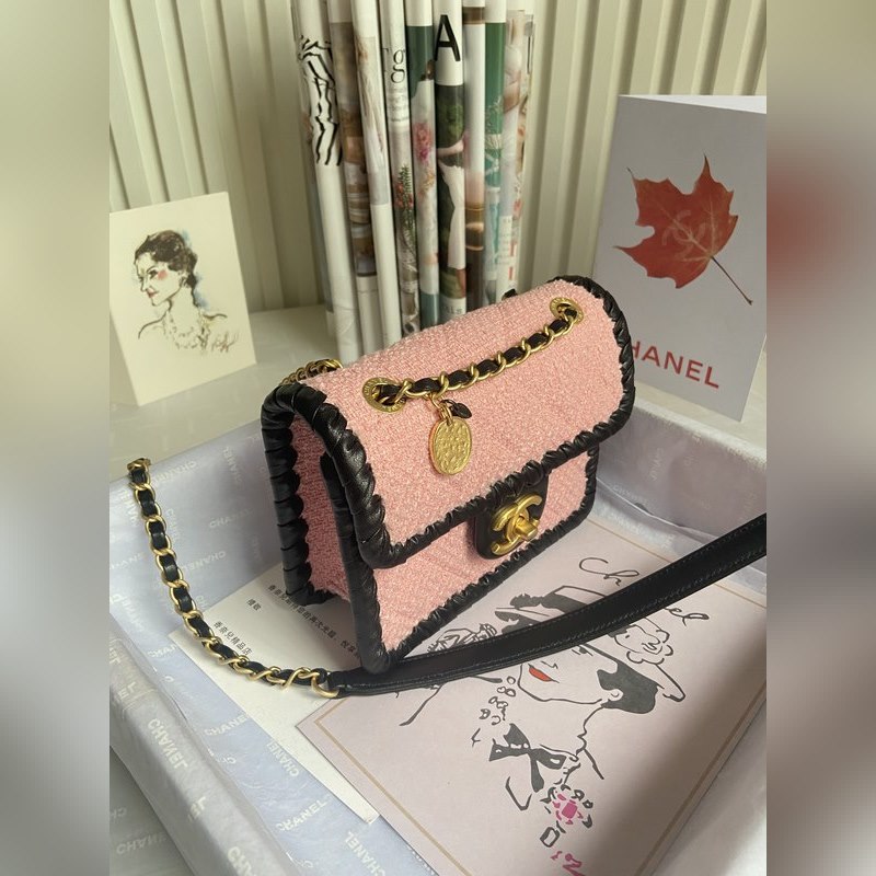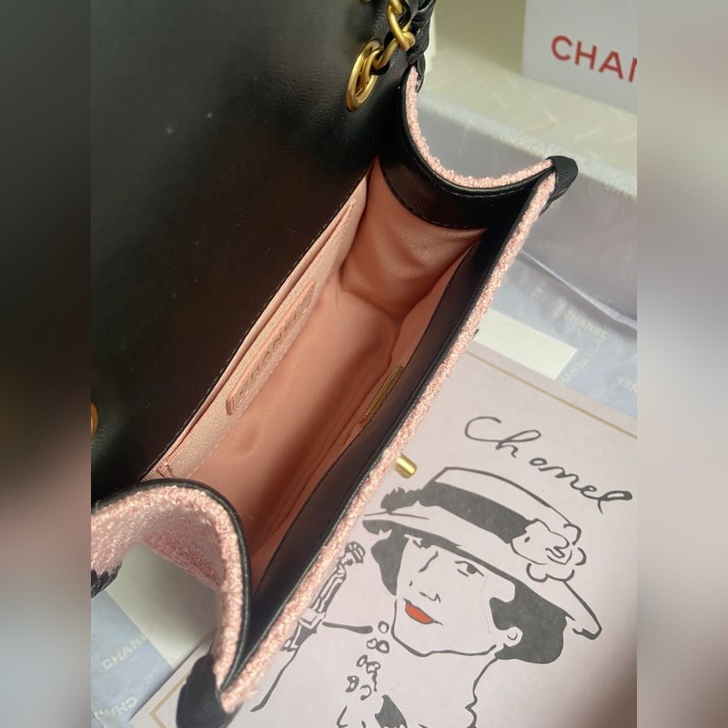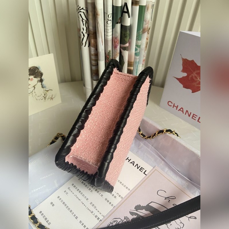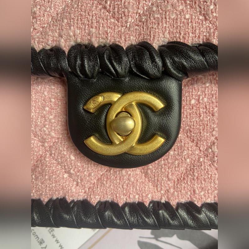 Chane1 양가죽 엮은 두부 주머니 Chane1의 새로운 양가죽 엮은 가장자리 두부 가방은 정말 고급스럽습니다! 여성스럽고 매우 가볍습니다. 이 체인에는 작은 배지가 달려 있는 작은 디테일도 있습니다. 크기: 19x15x6cm