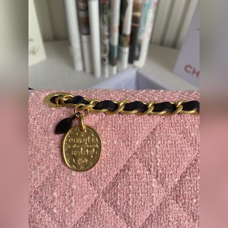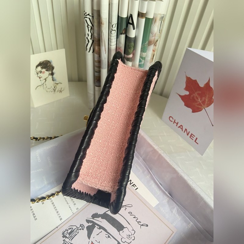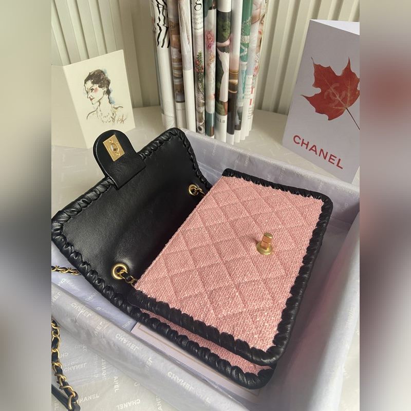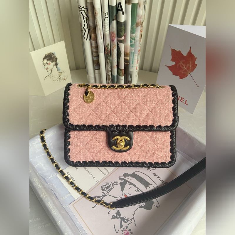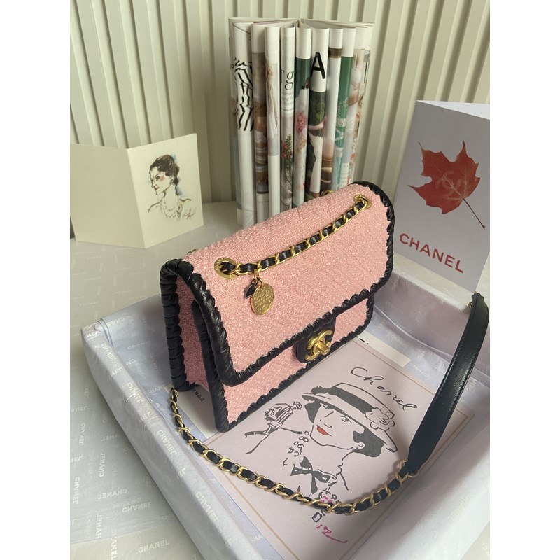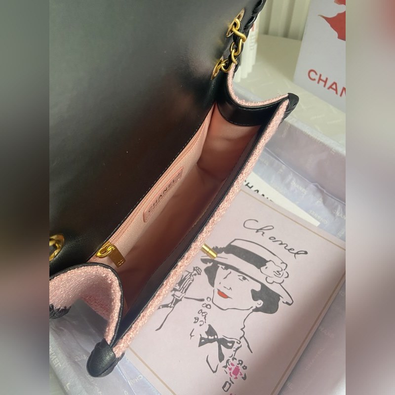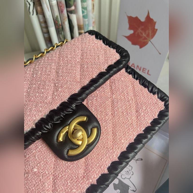 Chane1 양가죽 엮은 두부 주머니 Chane1의 새로운 양가죽 엮은 가장자리 두부 가방은 정말 고급스럽습니다! 여성스럽고 매우 가볍습니다. 이 체인에는 작은 배지가 달려 있는 작은 디테일도 있습니다. 크기: 22x17x7cm