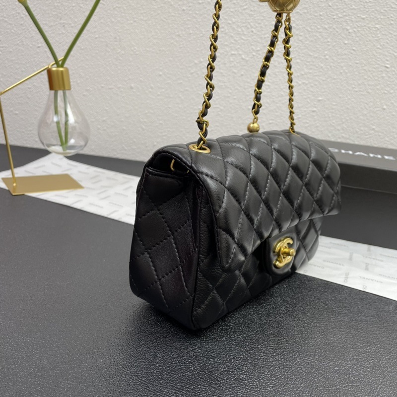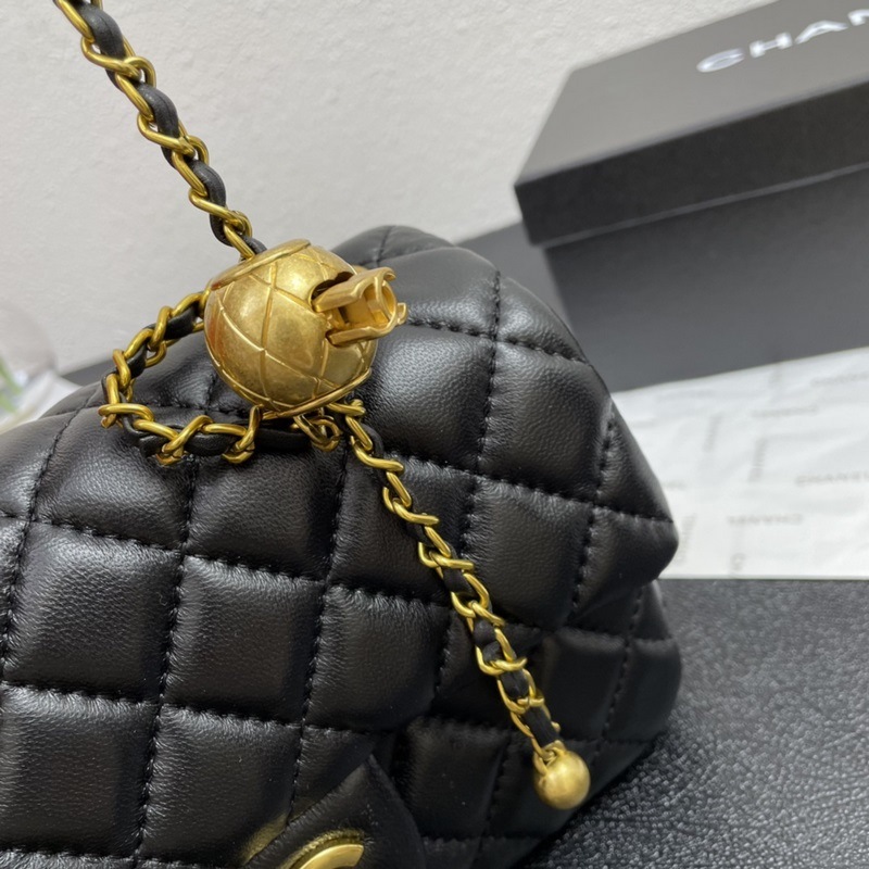 샤넬의 새로운 작은 향수 입 커버 백 골드 볼 체인 백 이 가방을 착용