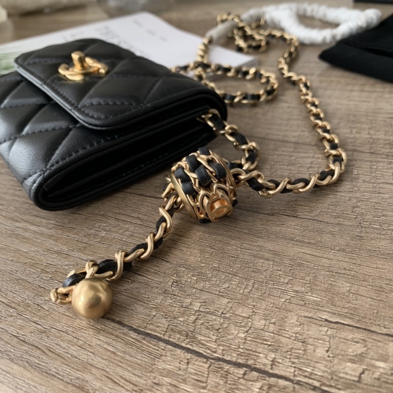 CHANEL 22S WOC 새 카드 홀더 골드 볼을 이용해서 체인의 길이