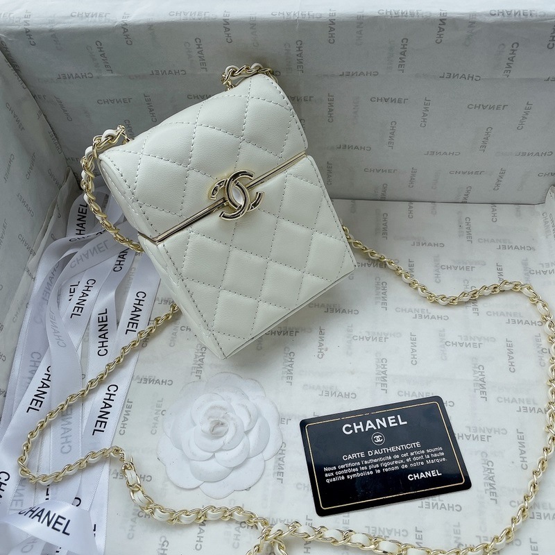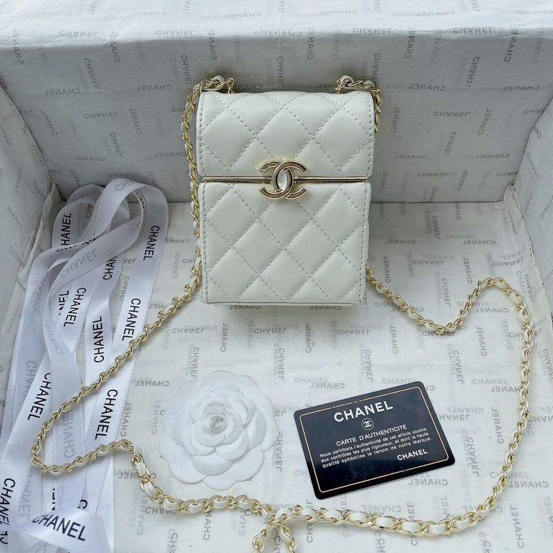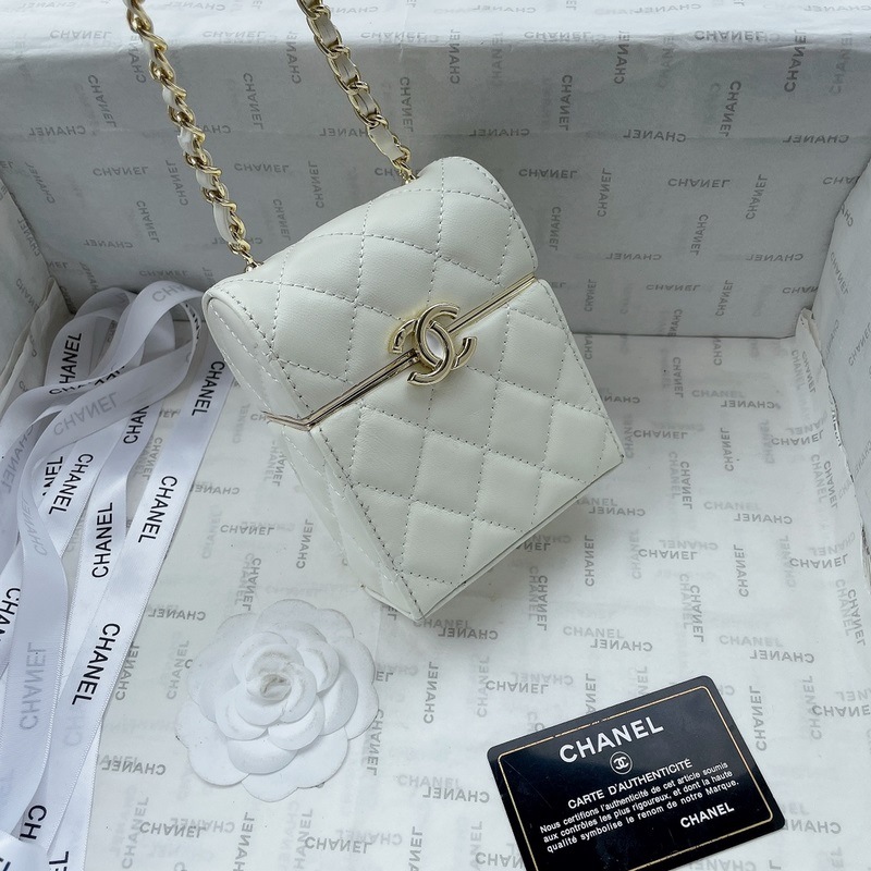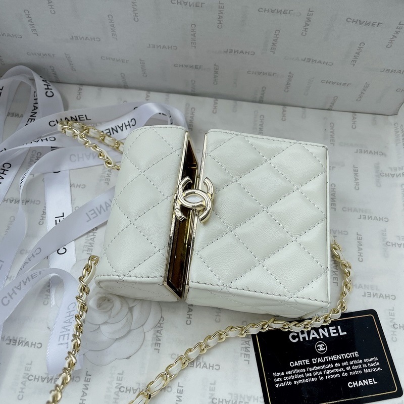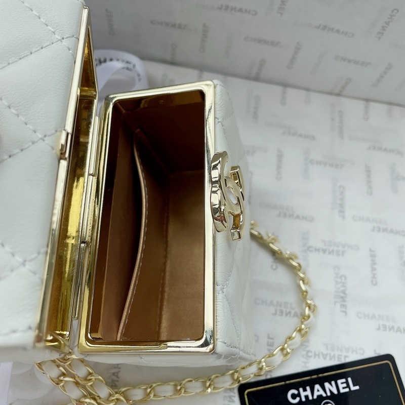 샤넬의 새로운 봄/여름 박스형 가방 내부는 거울이 있고 튼튼한 양가죽으로 만들어졌으며 금색 하드웨어가 달려 있습니다. 저는 이 작은 상자를 좋아합니다. 크기: 13x10cm