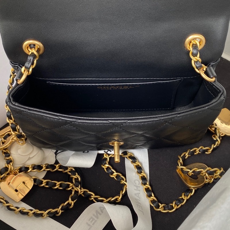 Chanel plaid chain pouch 모델 AS3456 CF with metal heart pendant heart 매우 빈티지한 펜던트 체인 5개의 하트 펜던트는 섬세하고 복잡하며 질감도 매우 좋습니다. 매우 눈길을 끕니다. 크기: 12*19*7cm
