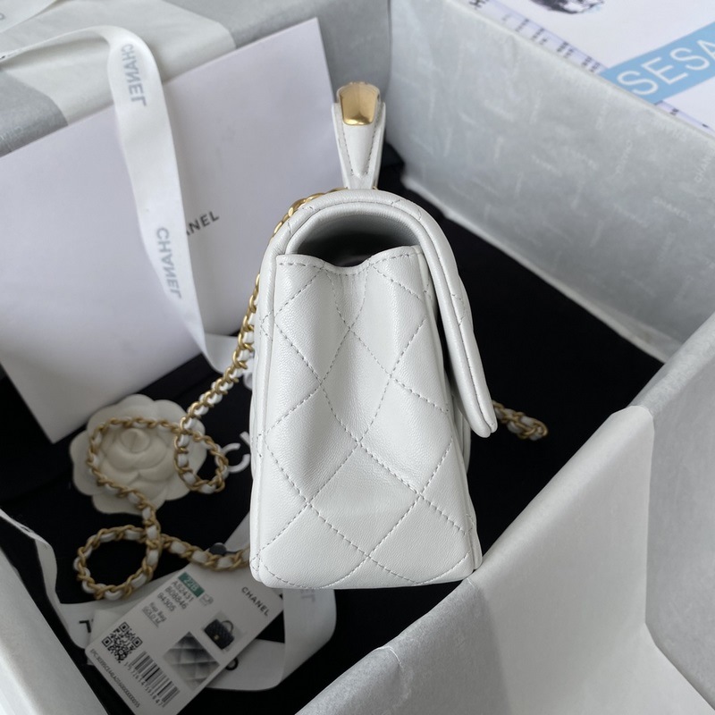 Chanel Mini CF 핸들 모델 AS2431 클래식 퀼팅 플랩 백 섬세하고 클래식한 체인으로 장식된 하드웨어 장식과 고급 양가죽으로 장식된 핸드백은 시대를 초월한 우아함을 표현합니다. 크기: 20x12x6cm