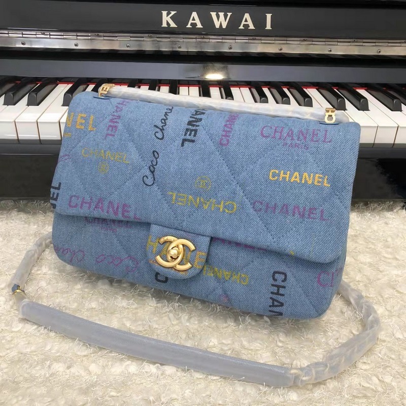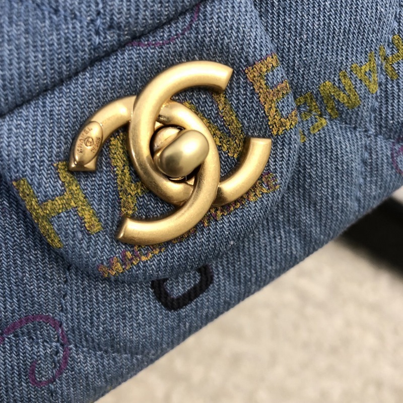 샤넬 뉴 데님 시리즈 cf 블루 클로스 체인 백 라지 모델 번호 3135