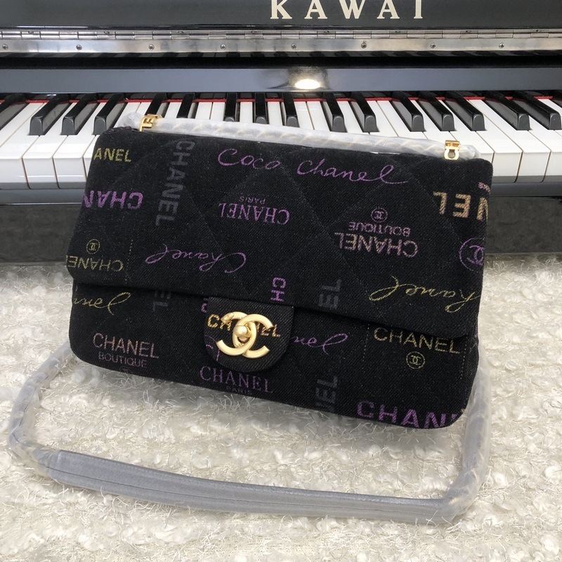 샤넬의 새로운 데님 시리즈 cf 블랙 패브릭 체인백 라지 모델 번호 31