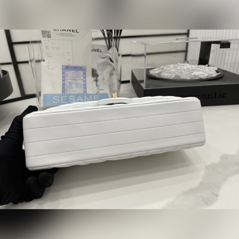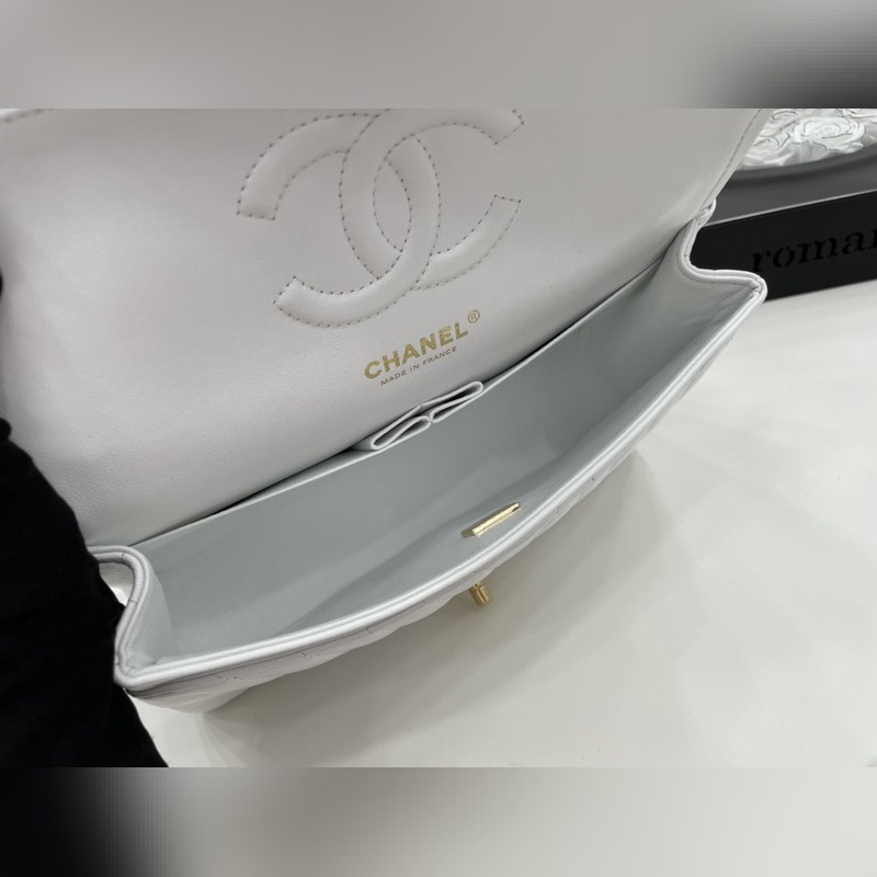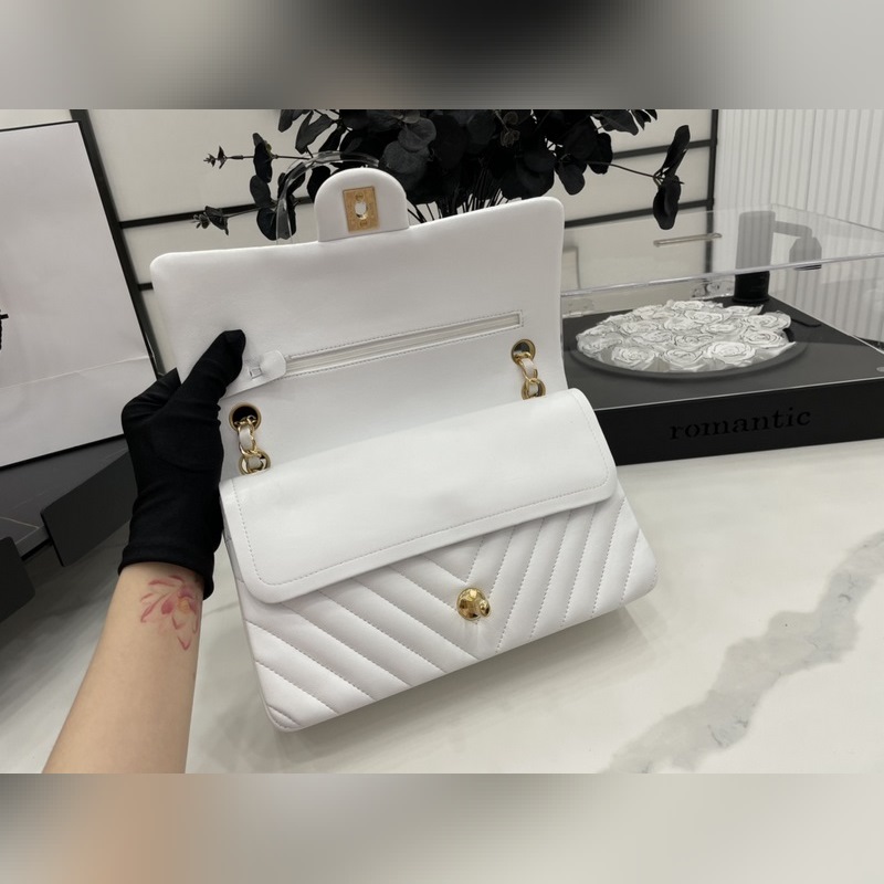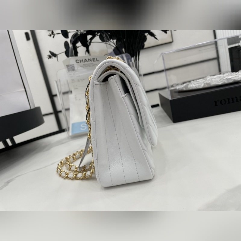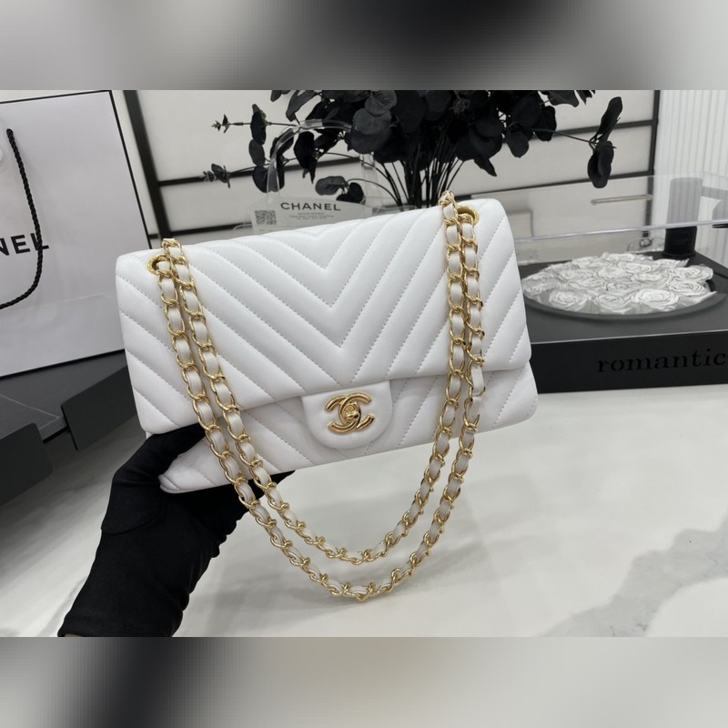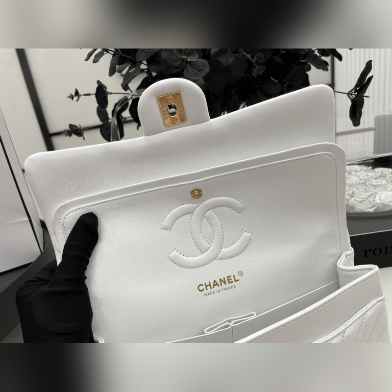 Chanel CF2.55 V-라인 램스킨 체인백 올스틸 메탈 CF25cm 램스킨 V-라인 매우 여성스럽고 우아한 코코 샤넬의 섹시한 매력이 돋보이는 클래식한 디자인으로 모든 옷에 잘 어울리고 역대 판매 챔피언으로 알려진 요정들의 옷장에 빠질 수 없는 아이템 이탈리아 가이아라의 오리지널 공장 등급 램스킨 섬세하고 유연성이 뛰어나며 코팅 없이 순수한 천연 물 염색 가죽 표면의 모공이 선명하게 드러남 크기: 25.5cm